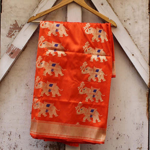 Nothing could be more regal than this dupatta with its marvellous procession of elephants! Handcrafted with incredible precision by our master weavers, it has intricate Meenakari work bedecking the stately figures.