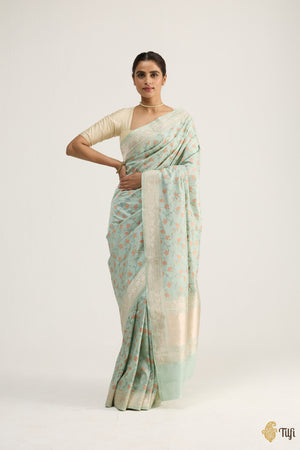 A reminder of fleeting seasons, this saree echoes the fiery beauty of the forest flower. It celebrates the flame-like Palash, woven in meenakari. The floral jaal captures the Palash in its true form, carrying the essence of spring.