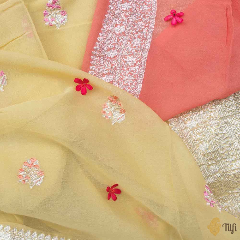 Technique - An enduring Kadwa weave. The elaborate and laborious Kadwa (Kadhua) technique involves hand-weaving each motif separately. It takes longer on the handloom, but makes a more robust pattern, which stands out on the fabric.