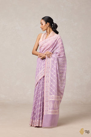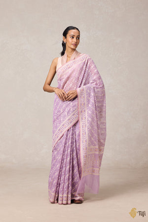 Lavender Pure Kora by Cotton Banarasi Handloom Saree