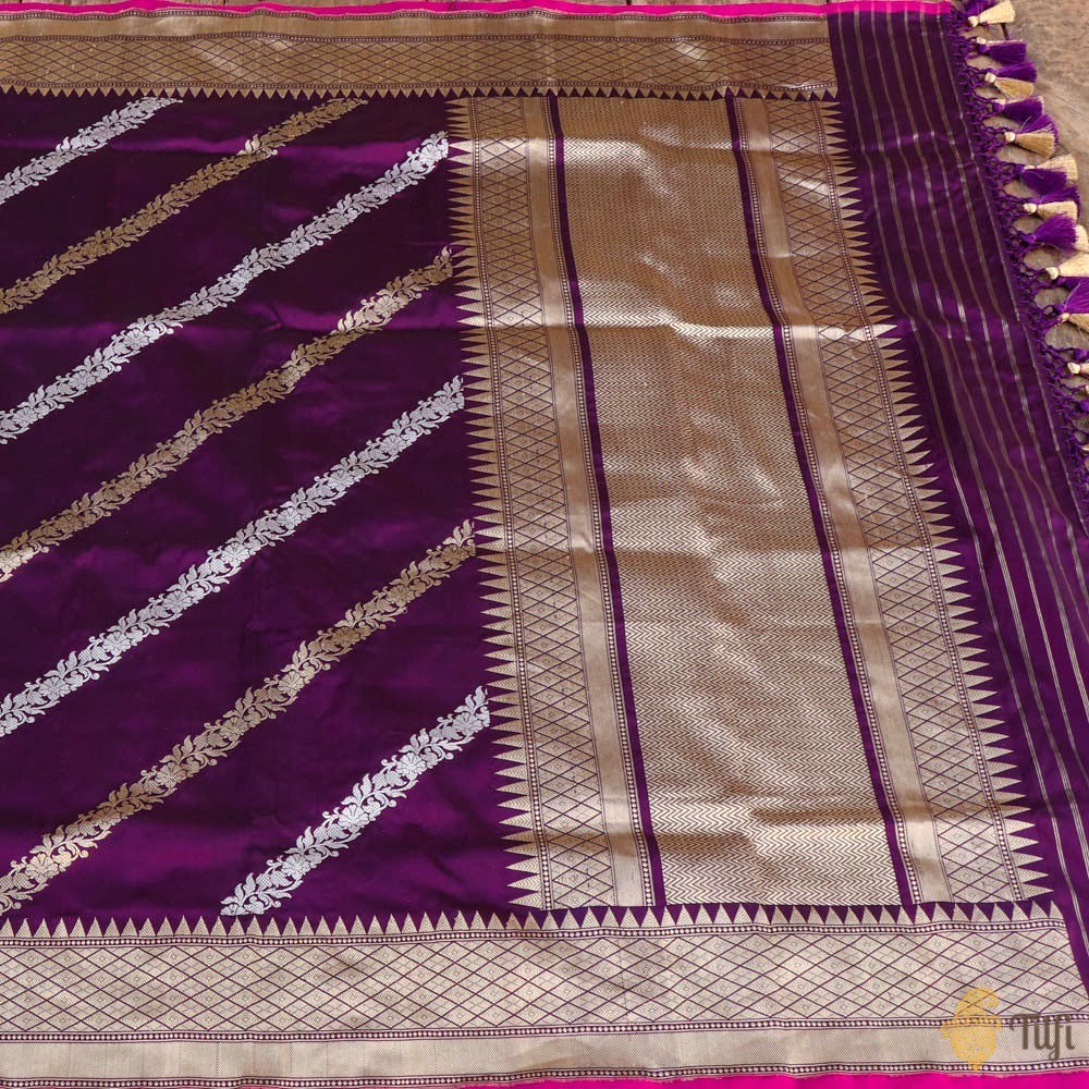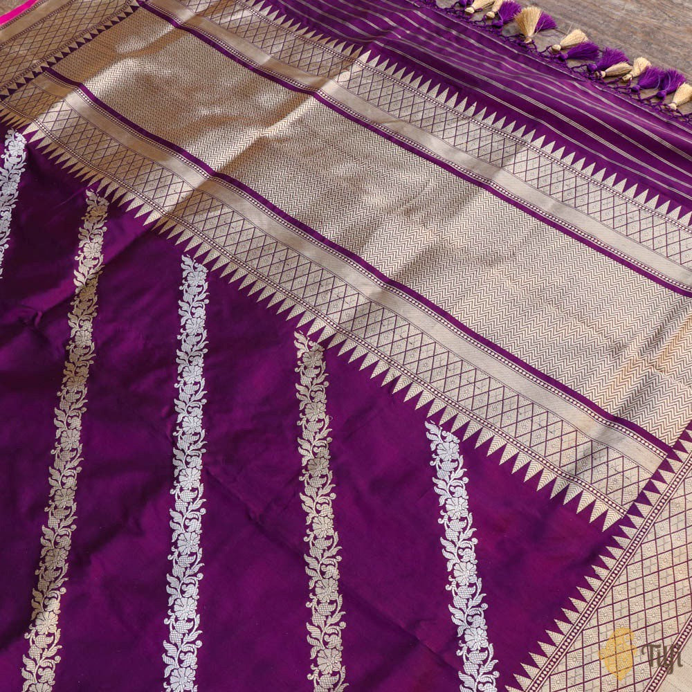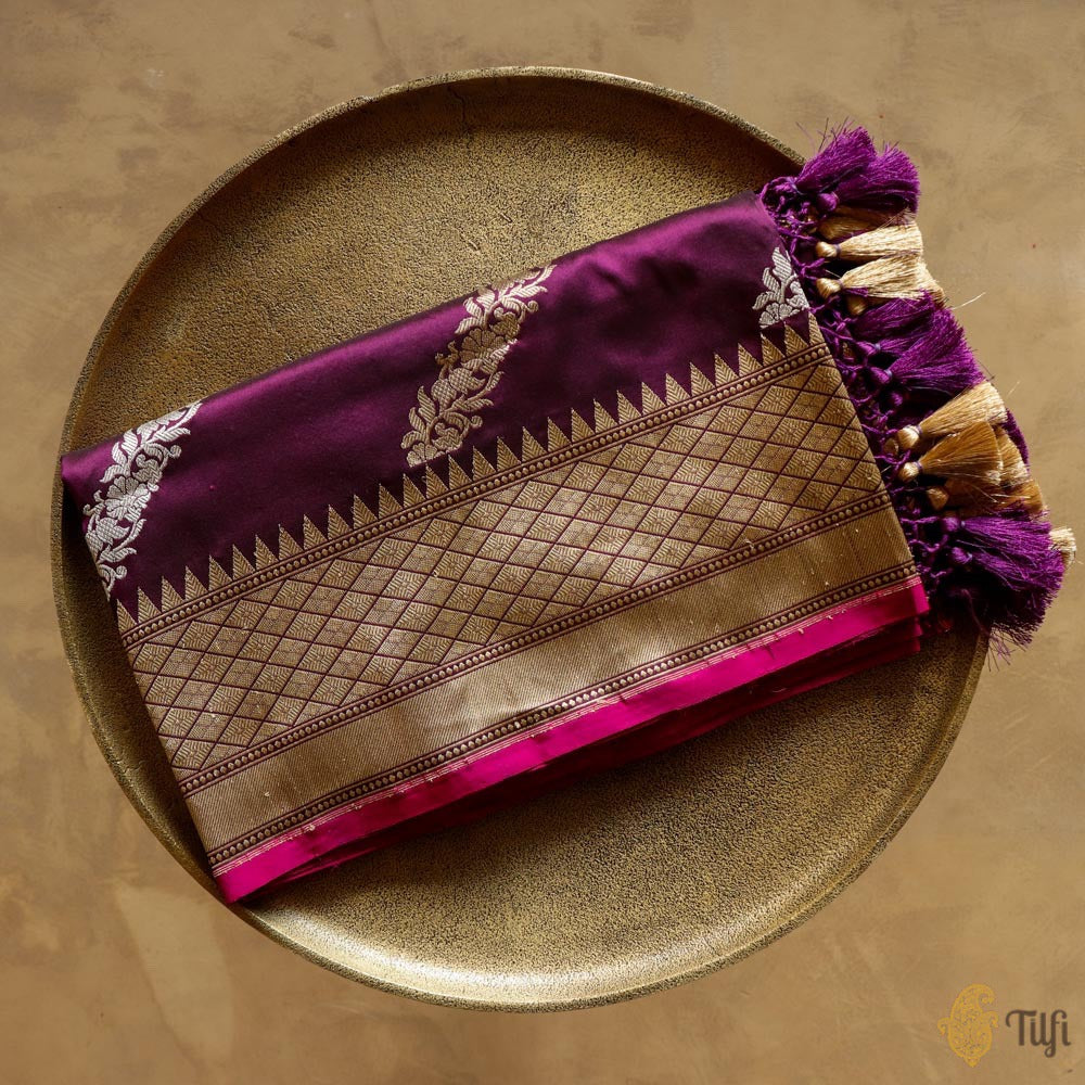 Technique - Classic handwoven Banarasi art passed down through generations and an enduring Kadwa weave. The elaborate and laborious Kadwa (Kadhua) technique involves hand-weaving each motif separately. It takes longer on the handloom, but makes a more robust pattern which stands out on the fabric.
