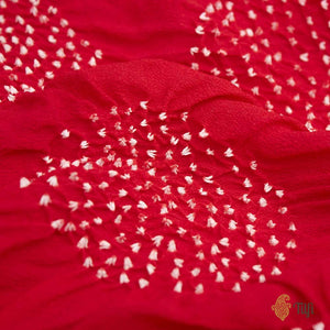 Technique - Classic handwoven Banarasi art passed down through generations of weavers. Pinch-sized portions of fabrics have been been tied with threads and dyed in traditional Kutchi style with vivid colours.