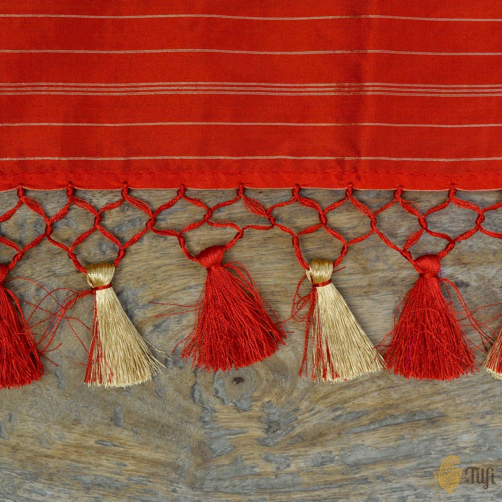Technique - Classic handwoven Banarasi art passed down through generations and an enduring Kadwa weave. The elaborate and laborious Kadwa (Kadhua) technique involves hand-weaving each motif separately. It takes longer on the handloom, but makes a more robust pattern which stands out on the fabric.