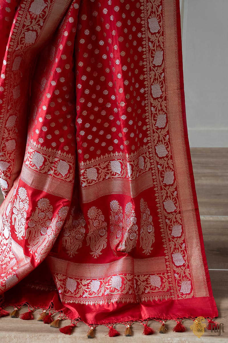 Red Pure Katan Silk Banarasi Handloom Dupatta