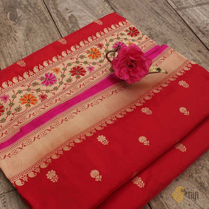 Red Pure Katan Silk Banarasi Handloom Saree
