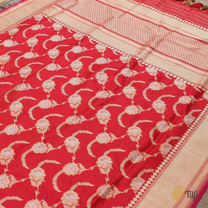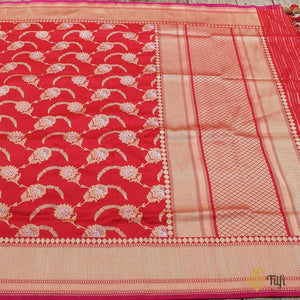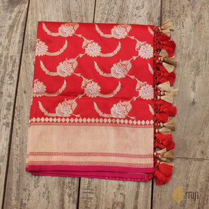 Red Pure Katan Silk Kadwa Jangla Handloom Dupatta