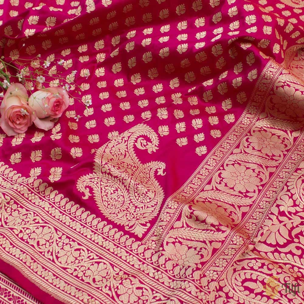 Speciality - A classic Bootidaar pattern with a koniya aanchal or paisleys at its corners. The corners are particularly difficult to weave as they are a break from the running pattern, but koniyas look magnificent when worn.