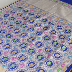 Speciality - A stunning zari ground created using a supplemental zari weft and intricate meenakari animal motifs throughout the body of the saree.