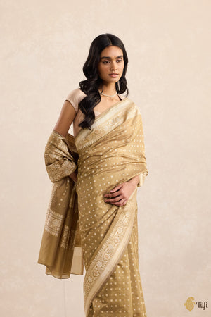 'Scattered Light' Earthy Beige Pure Kora Silk Georgette Banarasi Handloom Saree