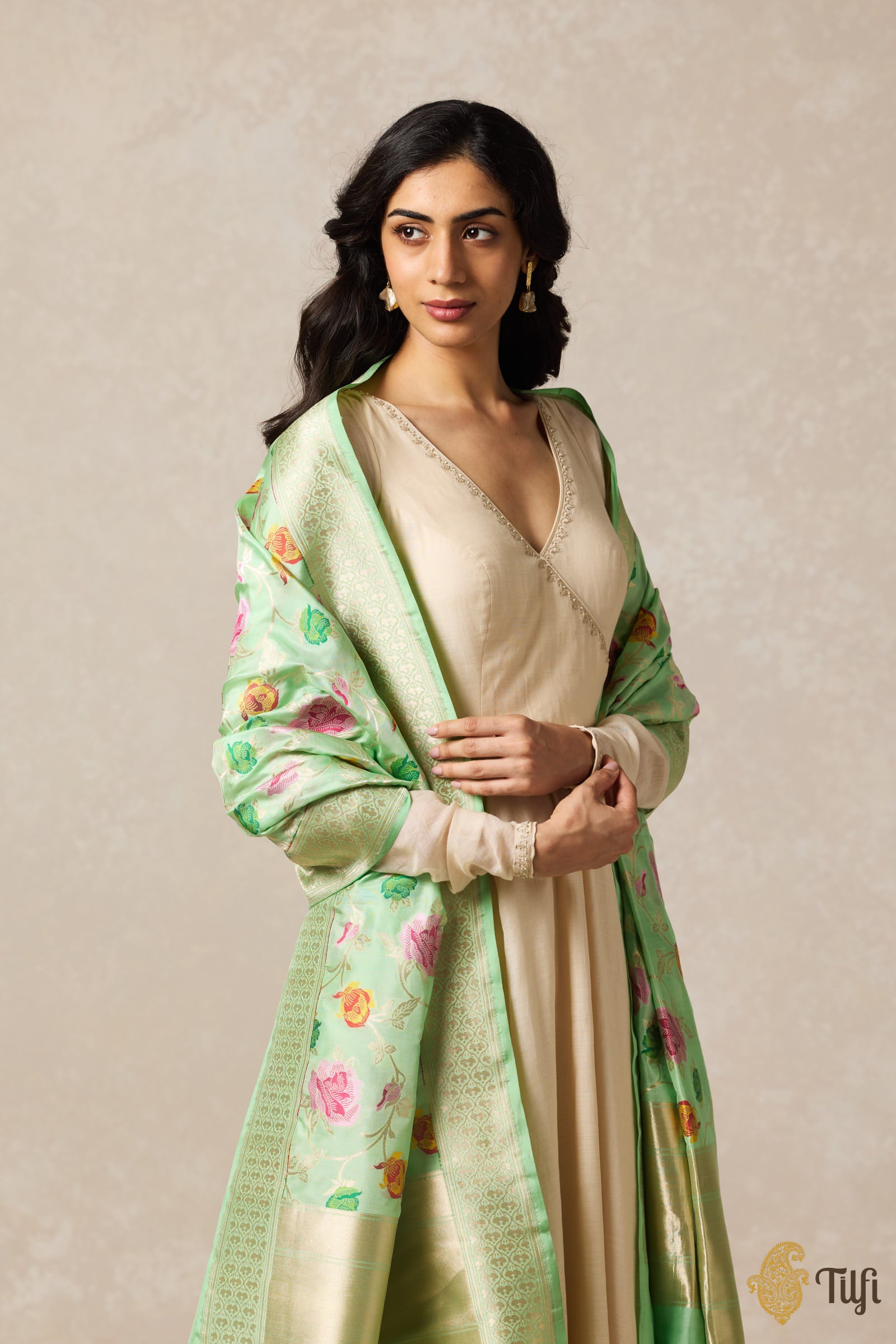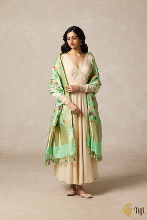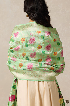 Sea Green Pure Katan Silk Banarasi Handloom Dupatta