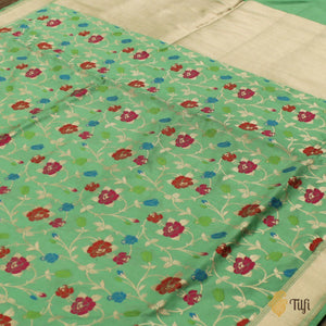 Technique - Classic handwoven Banarasi Meenakari art passed down through generations. Meenakari involves the painstaking addition of supplementary coloured resham threads during the hand-weaving process.