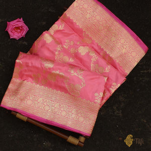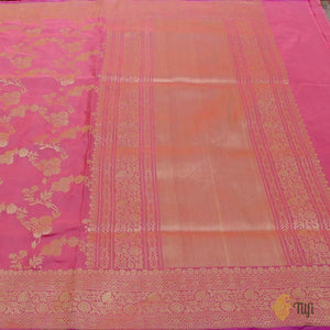 This ravishing Banarasi saree is destined to become a family heirloom! A luxurious full-kadwa jangla saree which brings with it the best of Indian weaving heritage. A real trousseau treasure.
