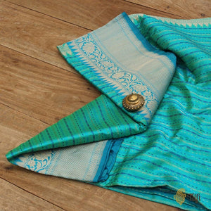 Speciality - A dash of contemporary with the traditional - a striped body set against a classic Kadiyal border, make this saree a graceful and versatile drape.