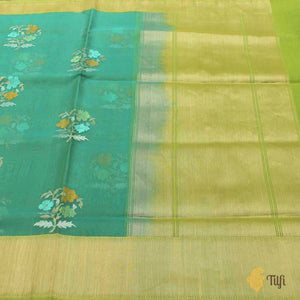 A quintessential, heritage Banarasi saree with time-honoured motifs woven in the exquisite kadhua style on gossamer kora. Add hints of Meenakari and roopa sona zari and this is an instant favourite.