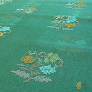 Technique - An enduring Kadwa weave and fine Meenakari technique. The elaborate and laborious Kadwa (Kadhua) technique involves hand-weaving each motif separately. It takes longer on the handloom, but makes a more robust pattern, which stands out on the fabric. Meenakari involves the painstaking addition of supplementary coloured resham threads during the hand-weaving process.