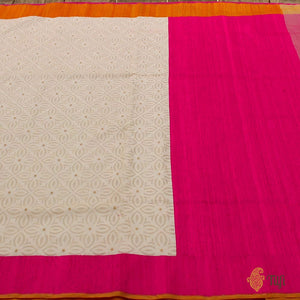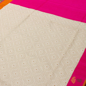 Traditional Banarasi art infused with a modern aesthetic sensibility...With its rich and uncommon Kadiyal pure Dupion silk border, and understated combination of vibrant shades, this saree is for the strong, cosmopolitan, modern woman!