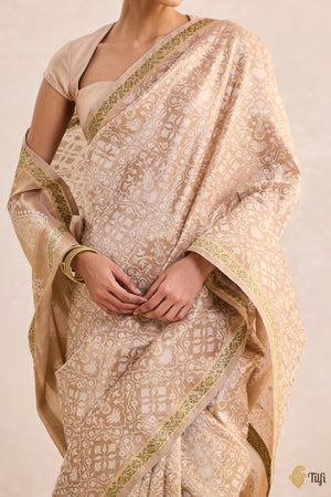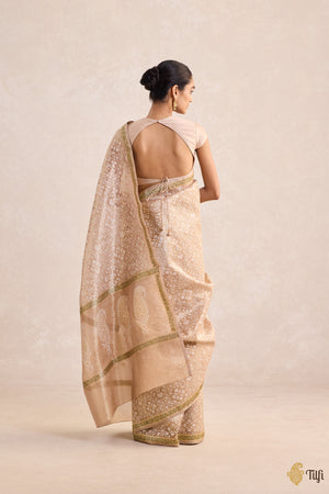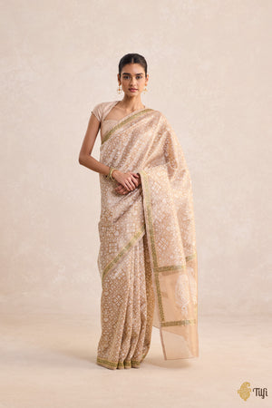 'Woven Breath' Gold Pure Kora Silk Tissue Real Zari Banarasi Handloom Saree