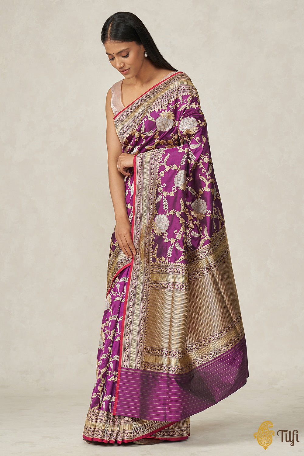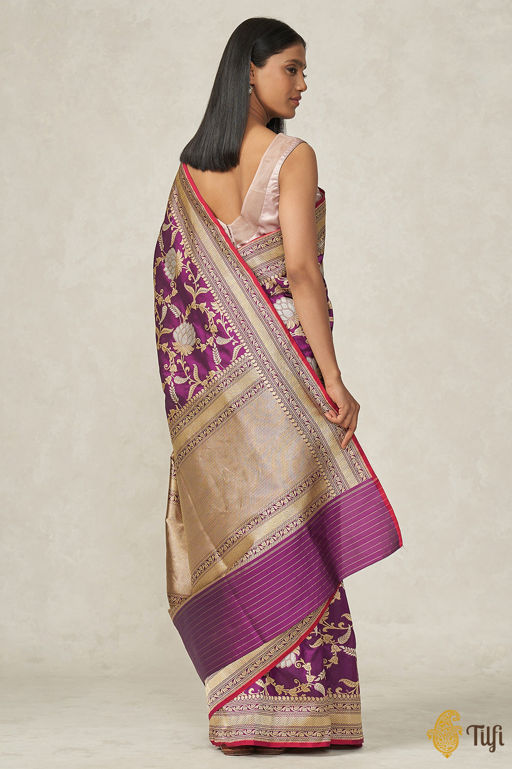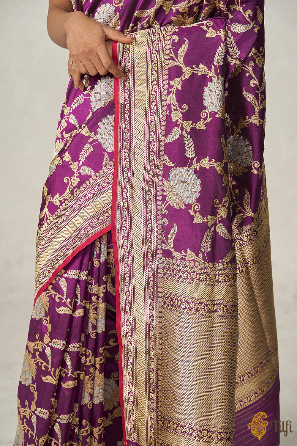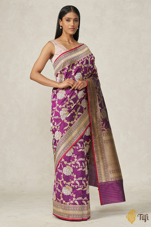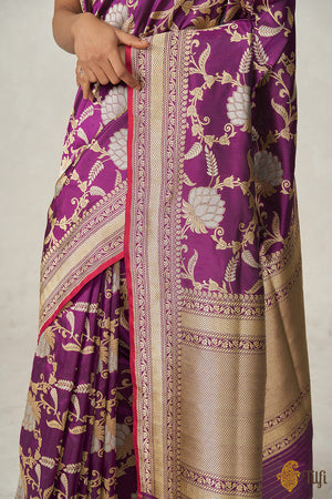 Black-Magenta Pure Katan Silk Banarasi Handloom Jangla Saree