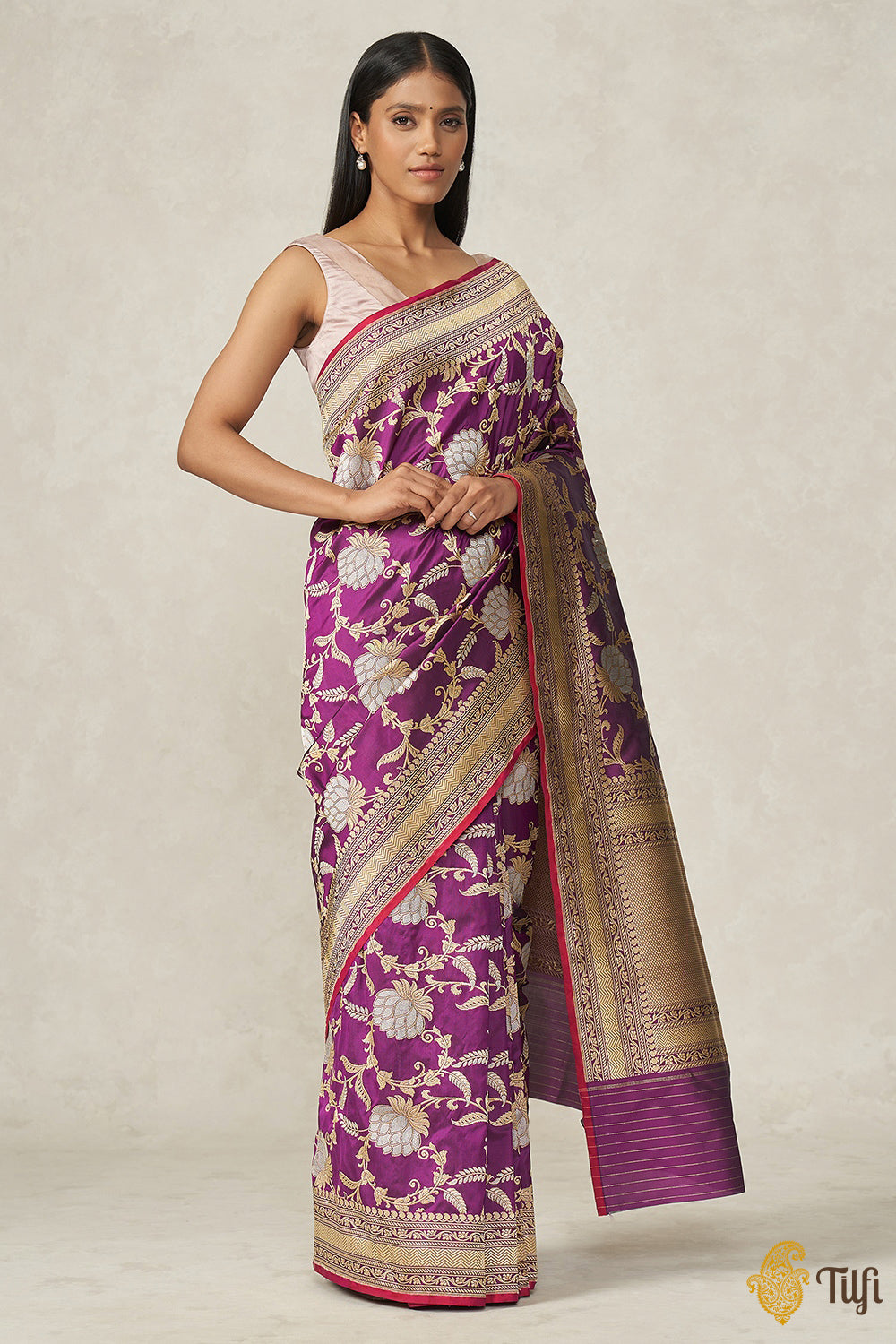 Lovingly handwoven, this gift from the eternal city is Banarasi regalia at its finest. A beautiful color adorned with an exquisite roopa sona zari floral jaal in kadhua weave, makes it a keepsake. Because special occasions deserve something extraordinary!