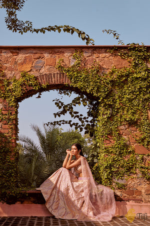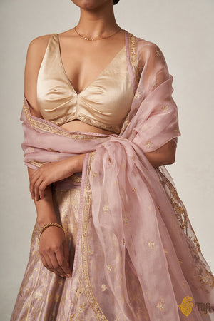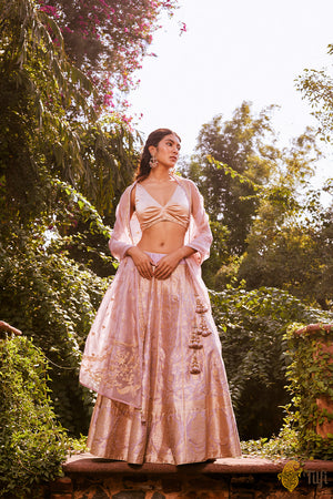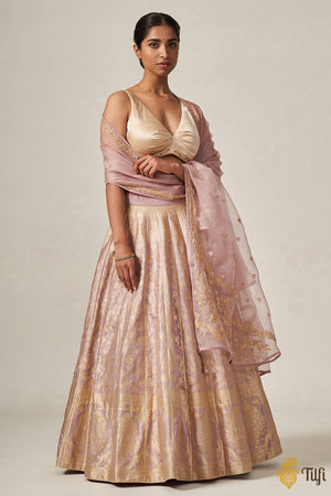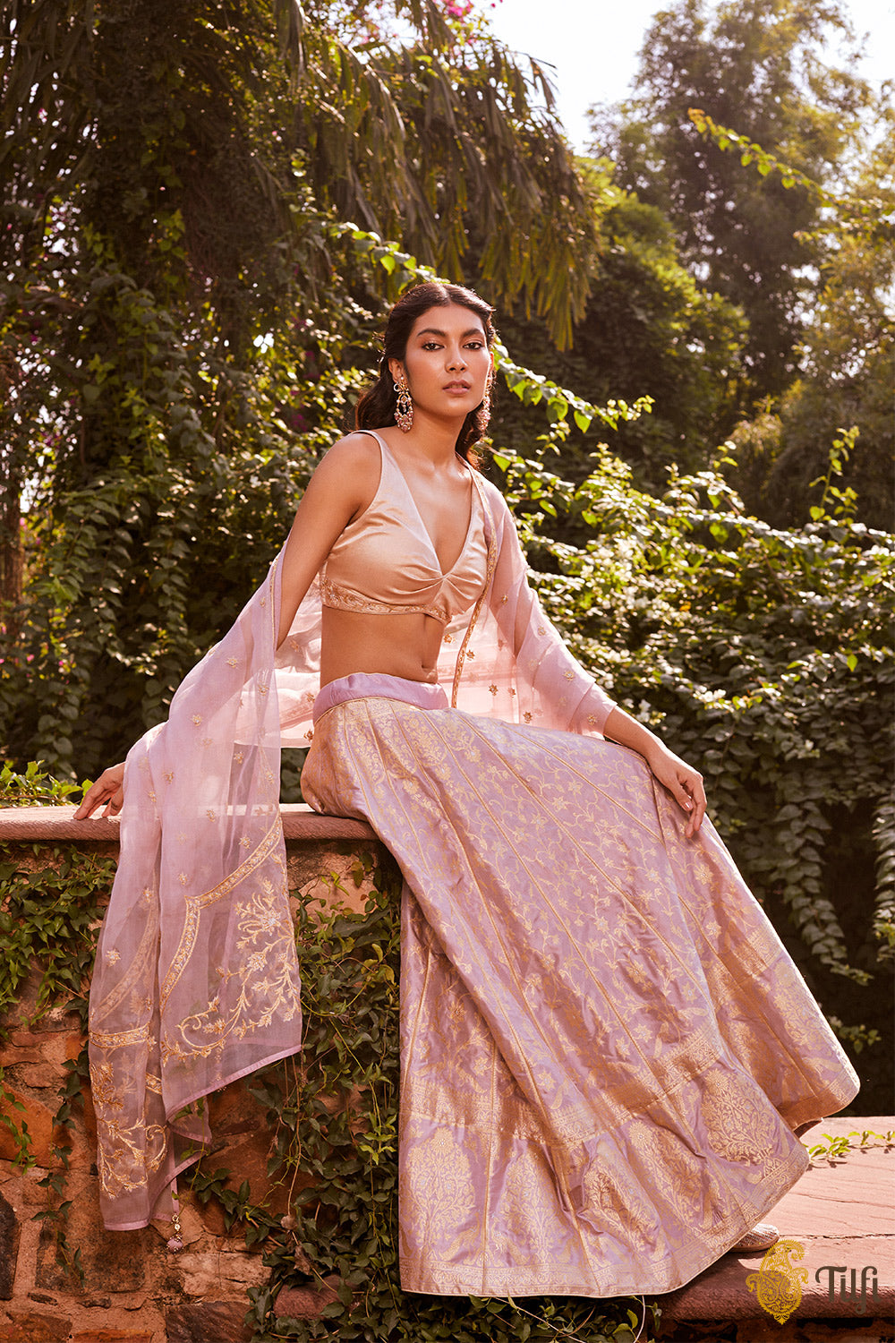 'Indira' Lavender Pure Katan Silk Banarasi Handloom Lehenga Set