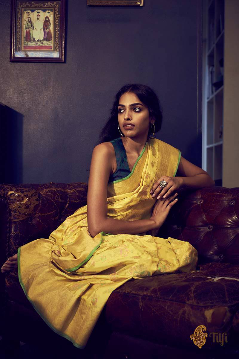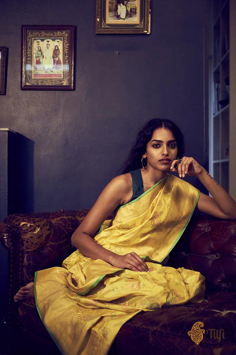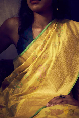 Light Yellow Pure Katan Silk Banarasi Handloom Saree