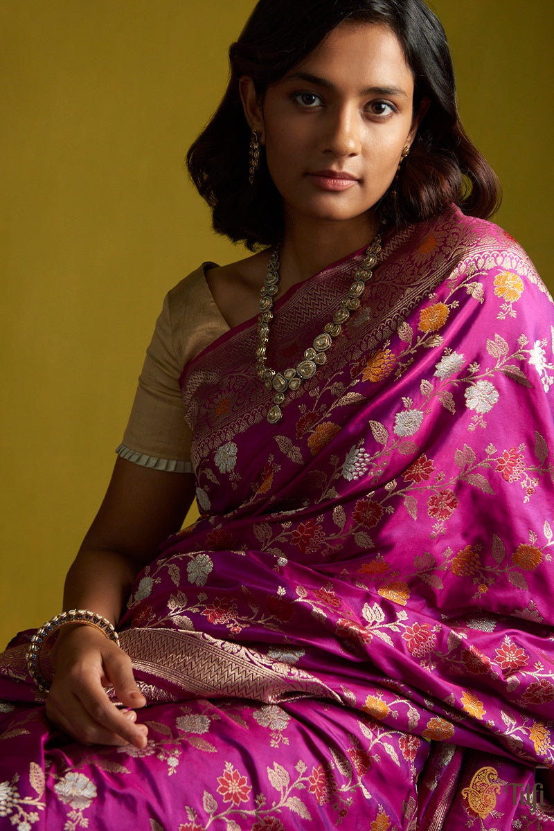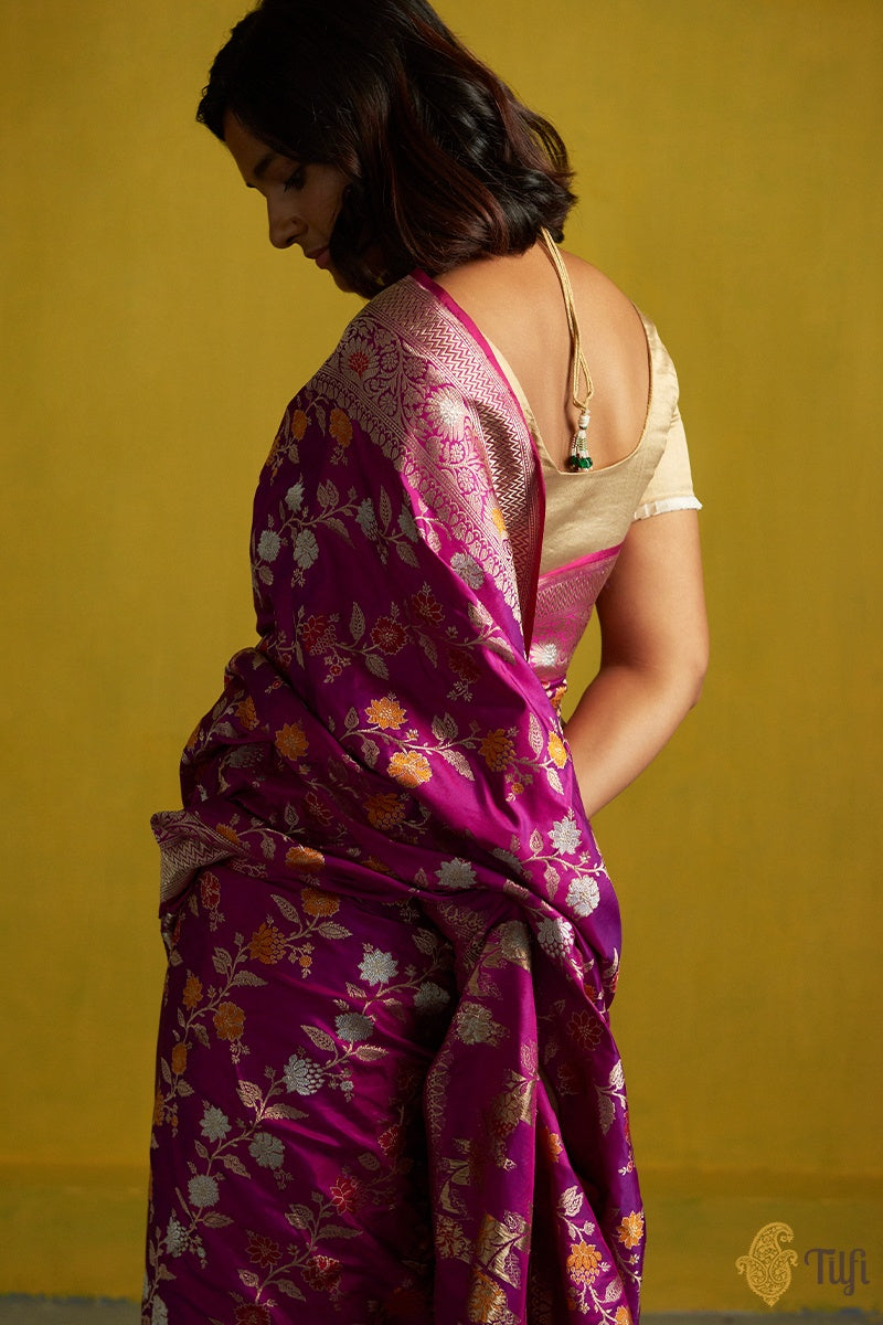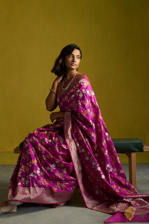 'Adah' Magenta-Purple Pure Katan Silk Banarasi Handloom Saree