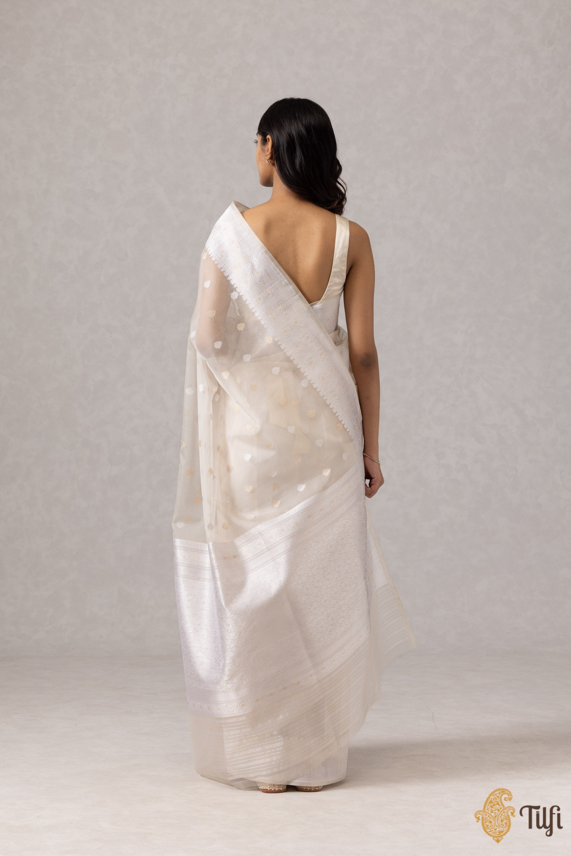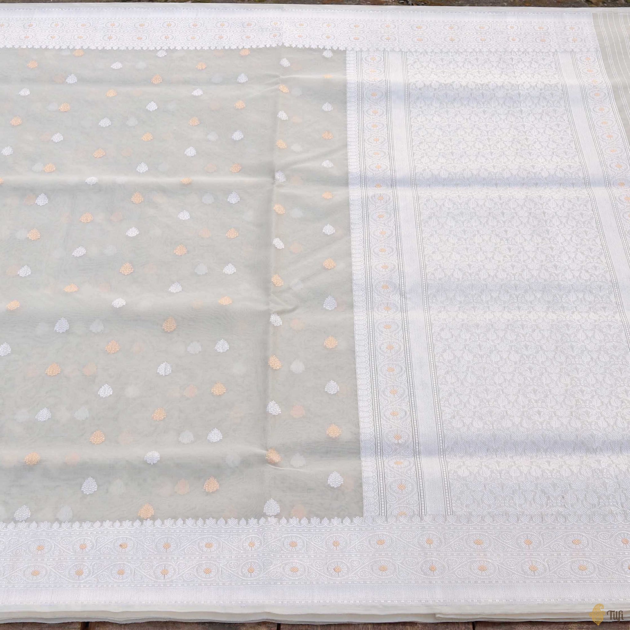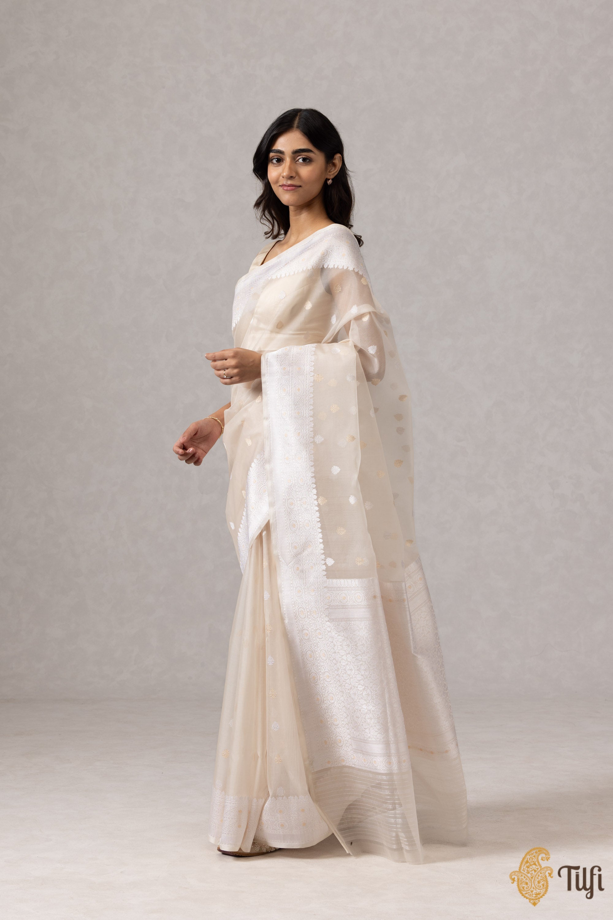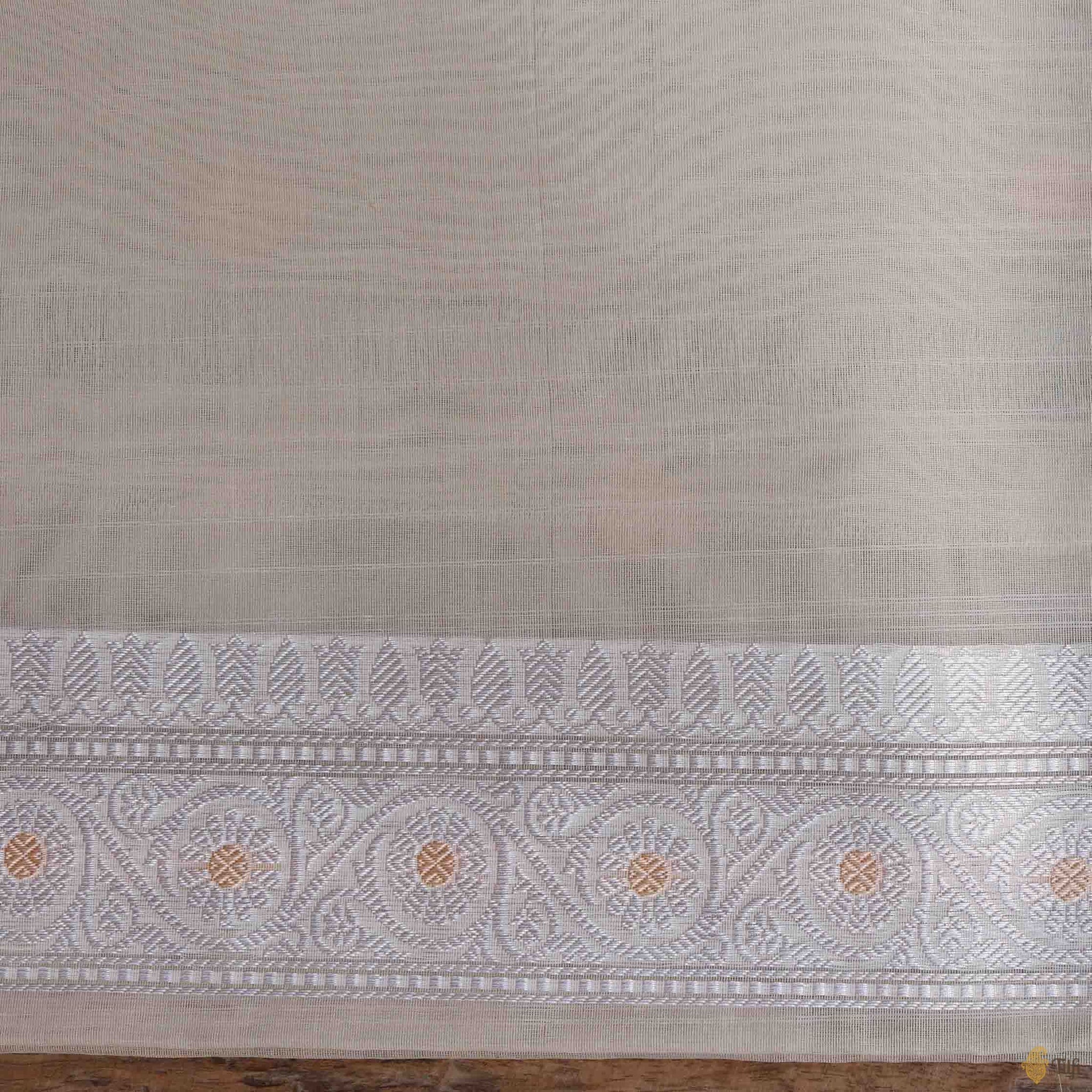 Off-White Pure Kora Silk Handloom Banarasi Kadwa Saree
