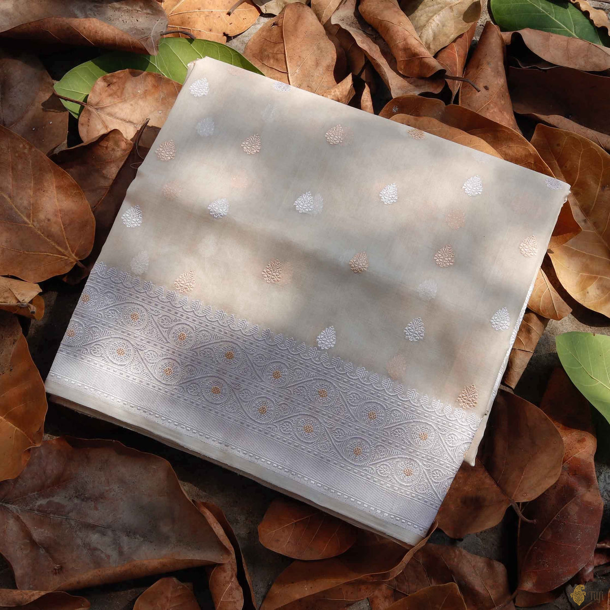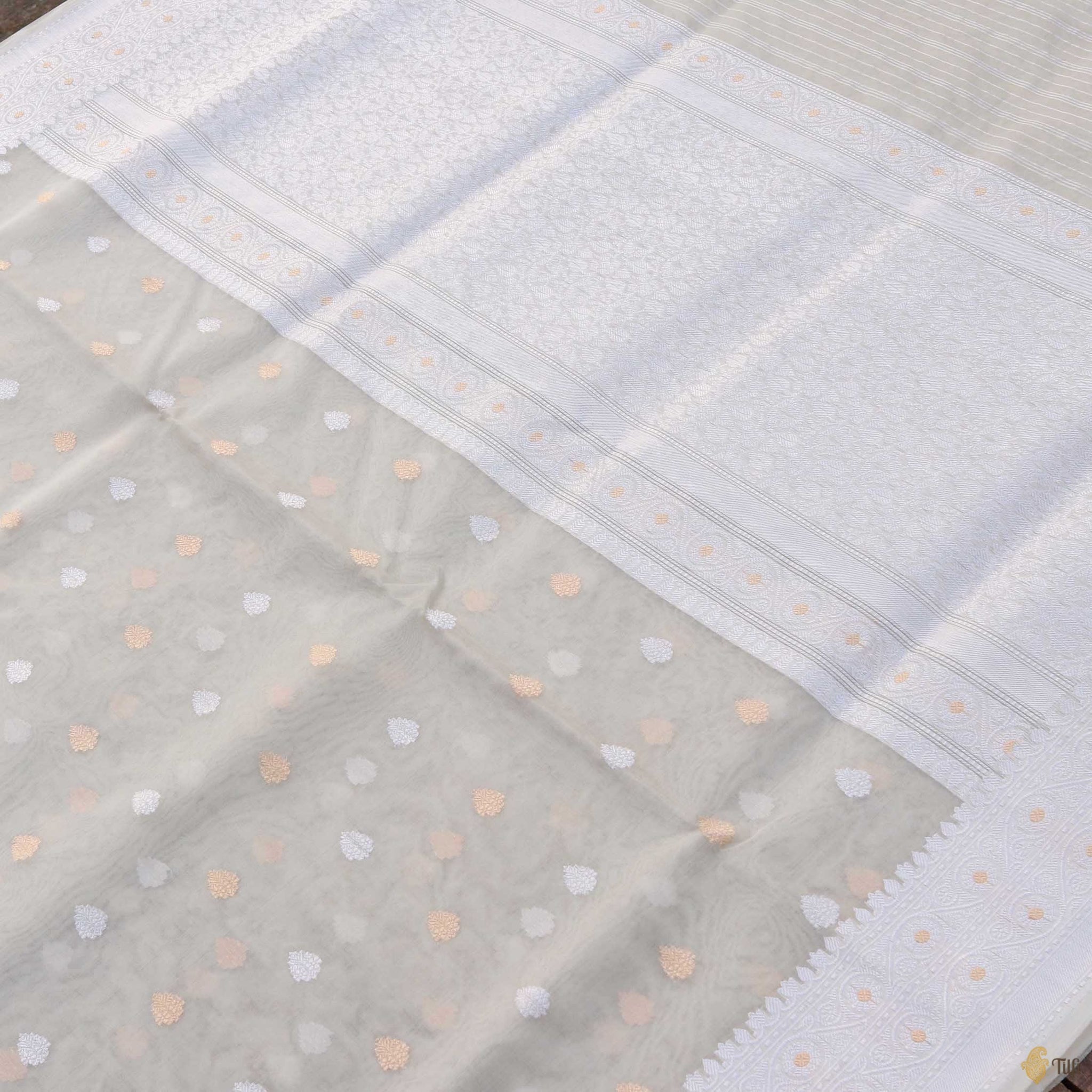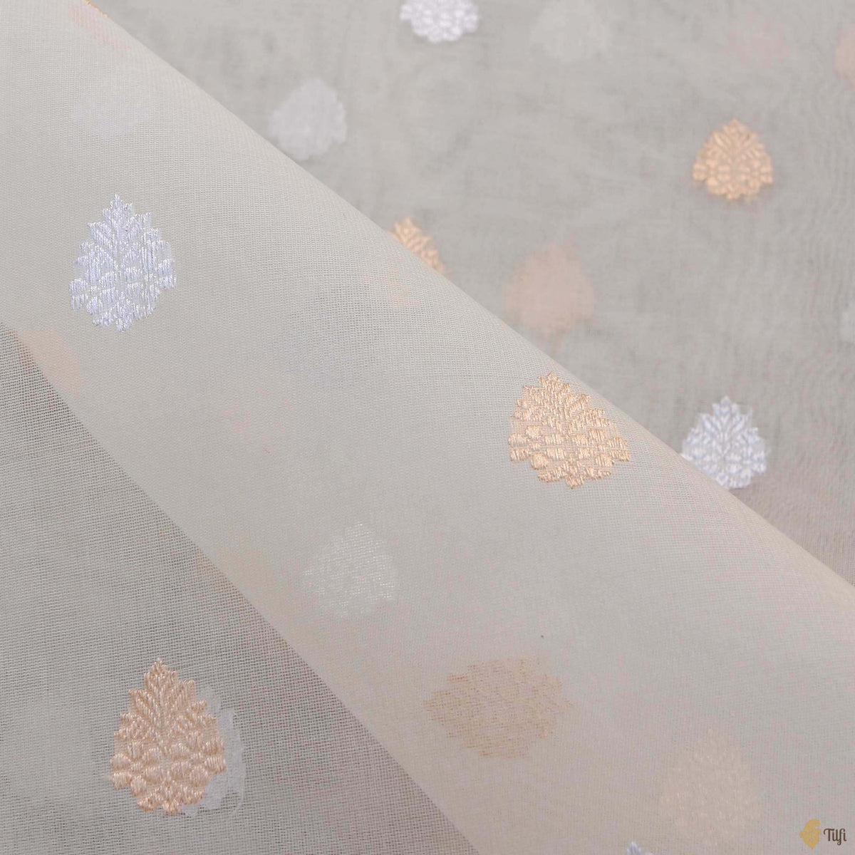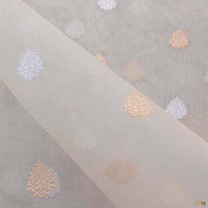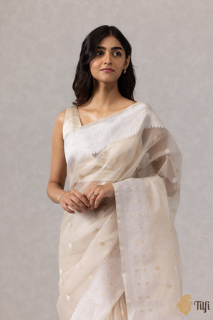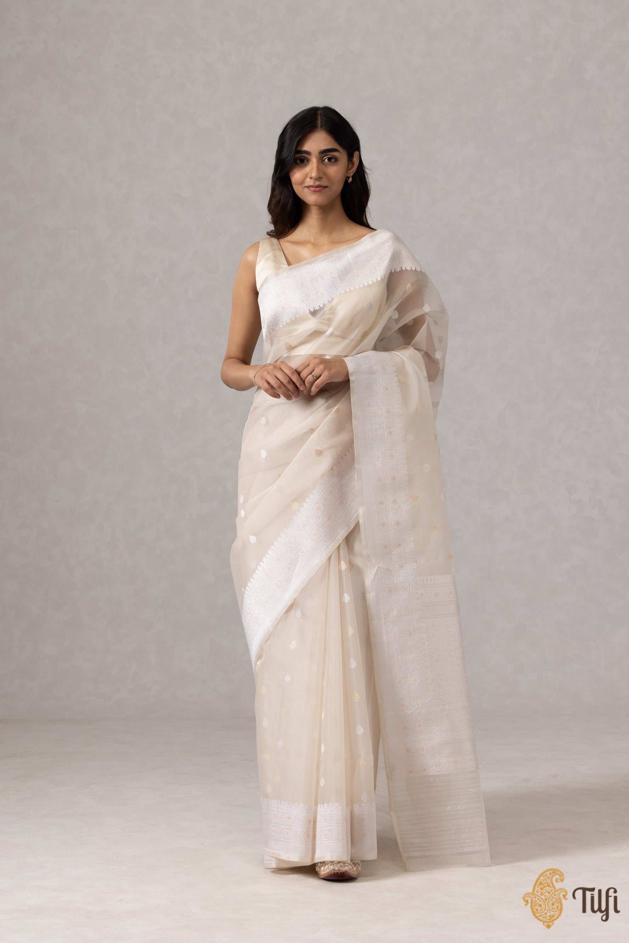 Off-White Pure Kora Silk Handloom Banarasi Kadwa Saree