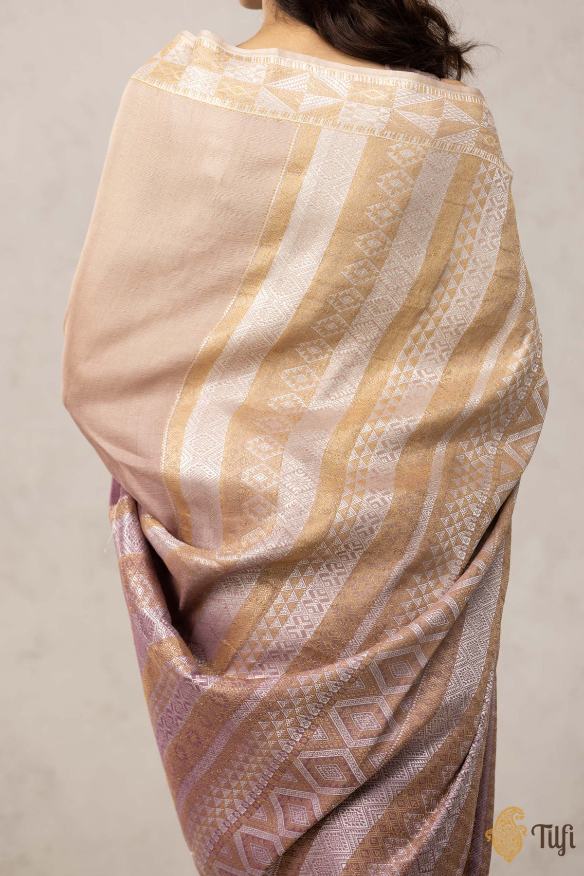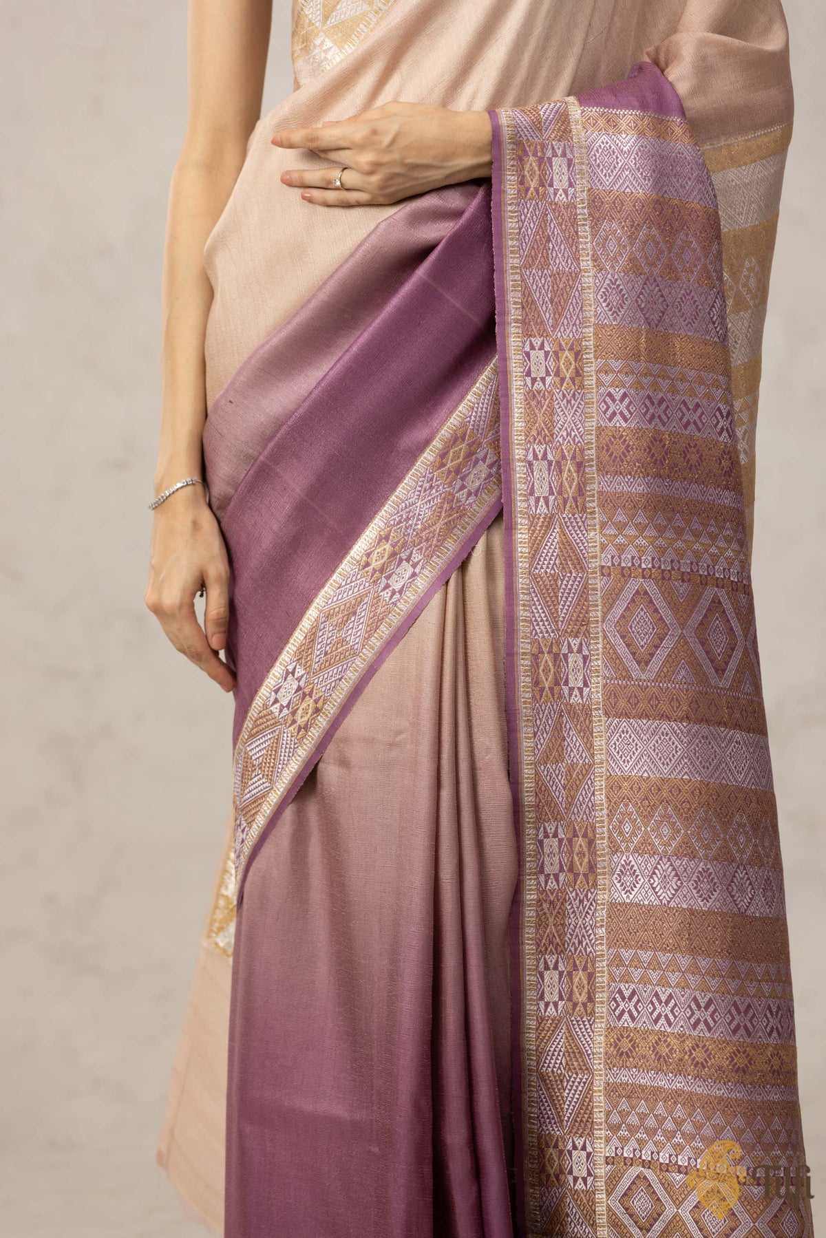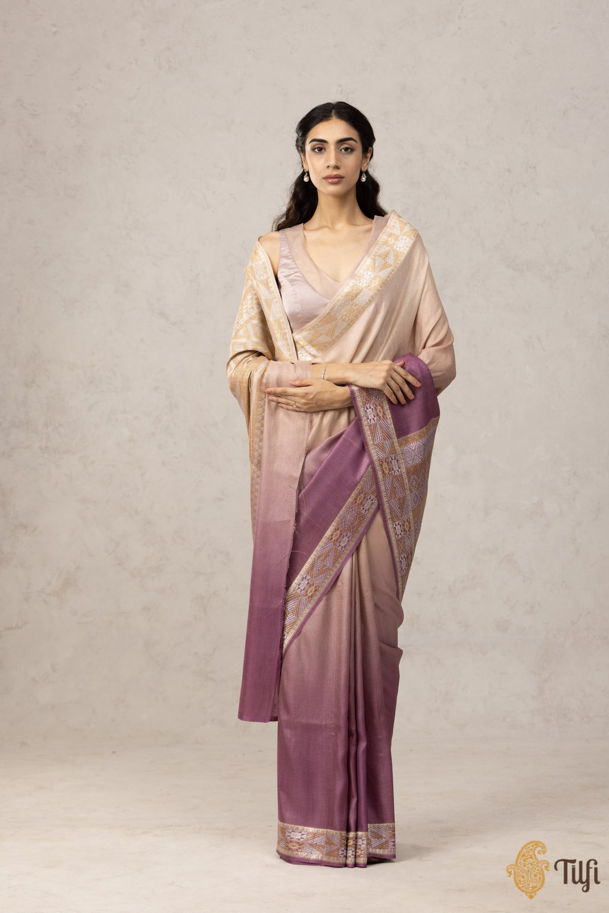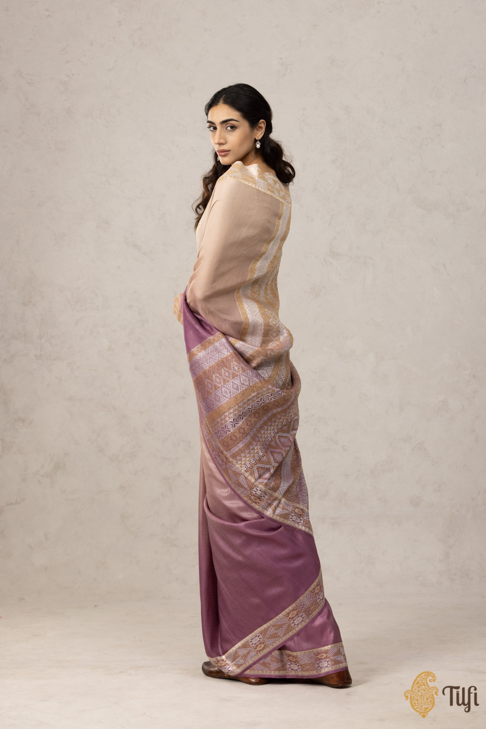 Old Rose-Mauve Ombré Pure Tussar Georgette Silk Banarasi Handloom Saree