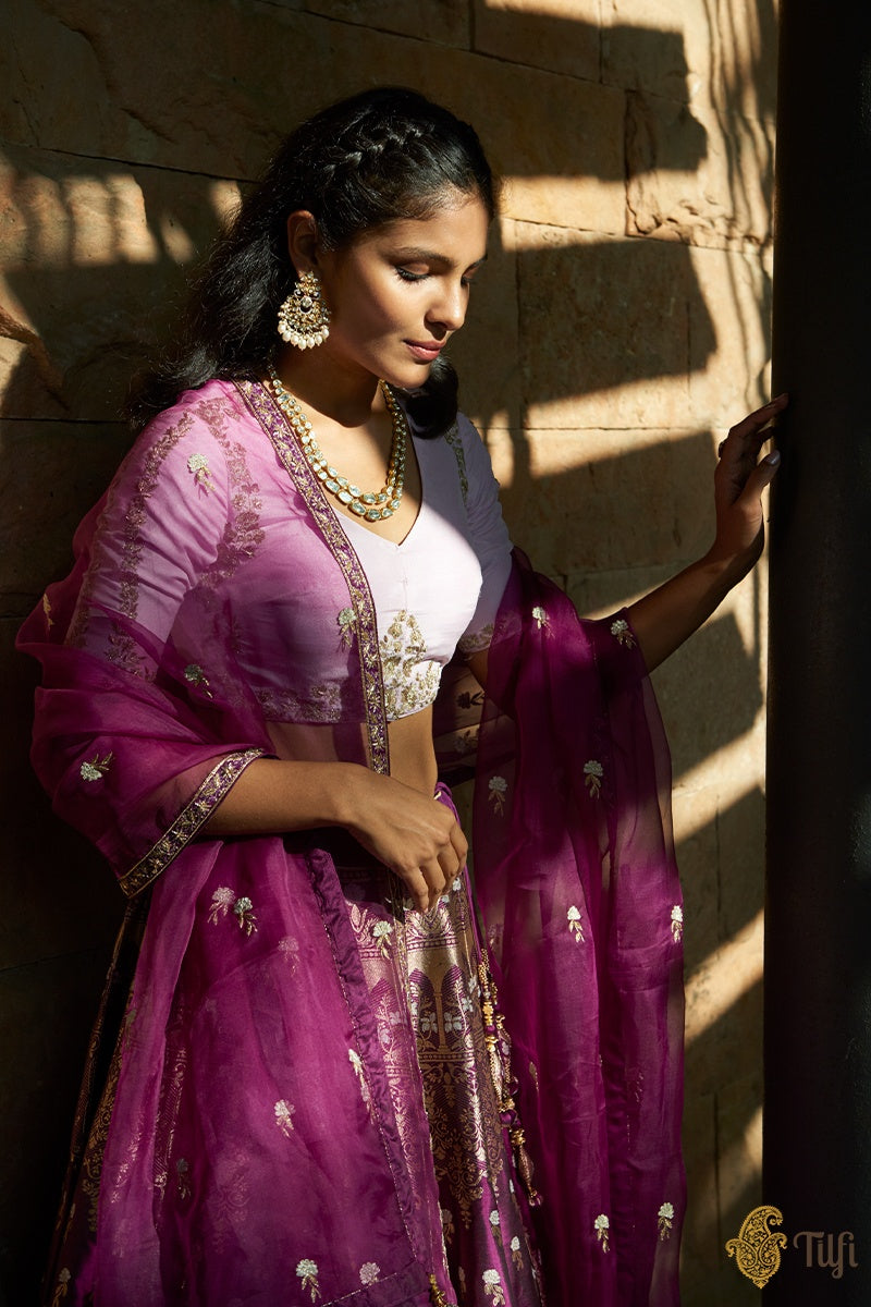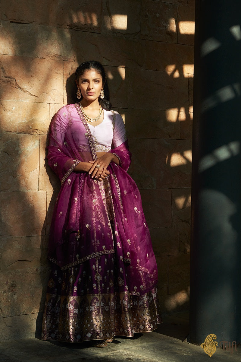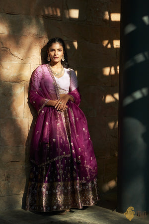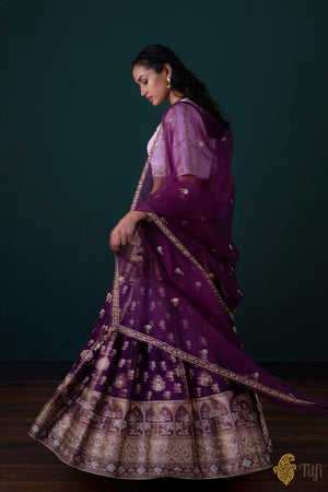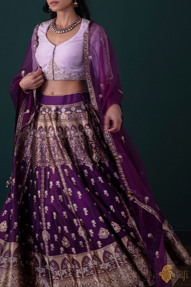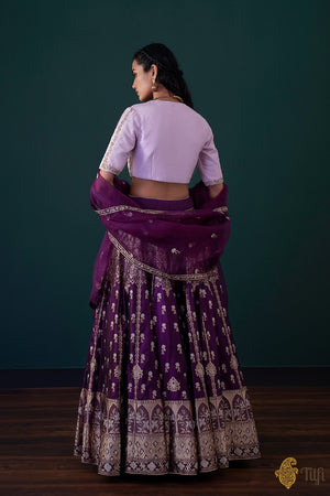 Purple Pure Katan Silk Banarasi Handloom Lehenga Set
