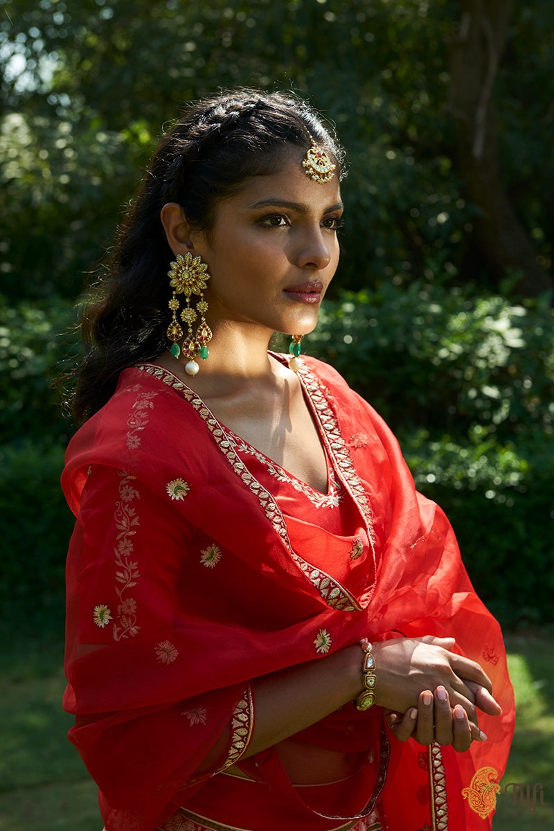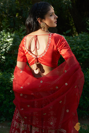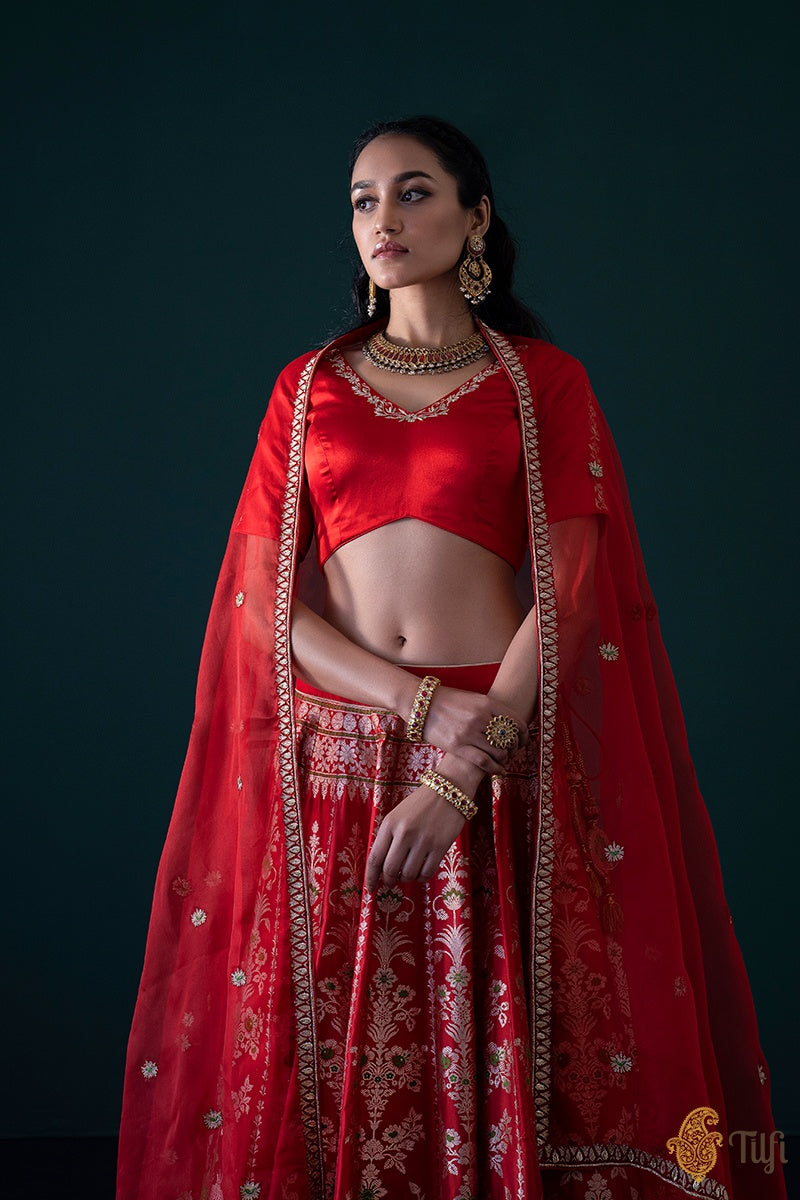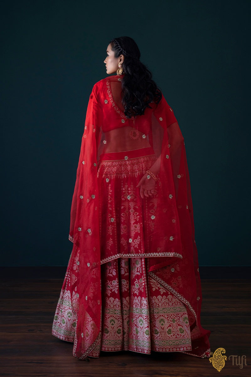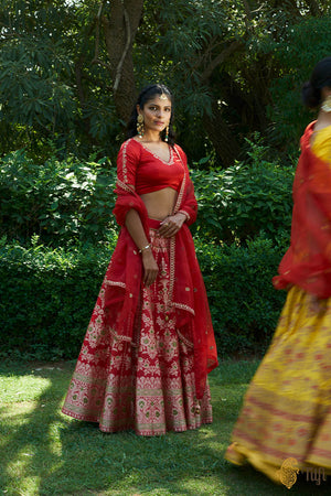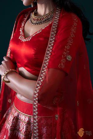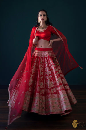 Red Pure Katan Silk Banarasi Handloom Lehenga Set
