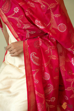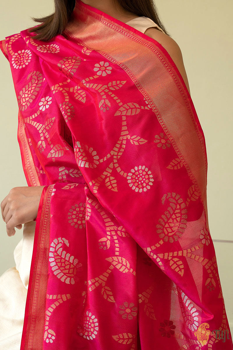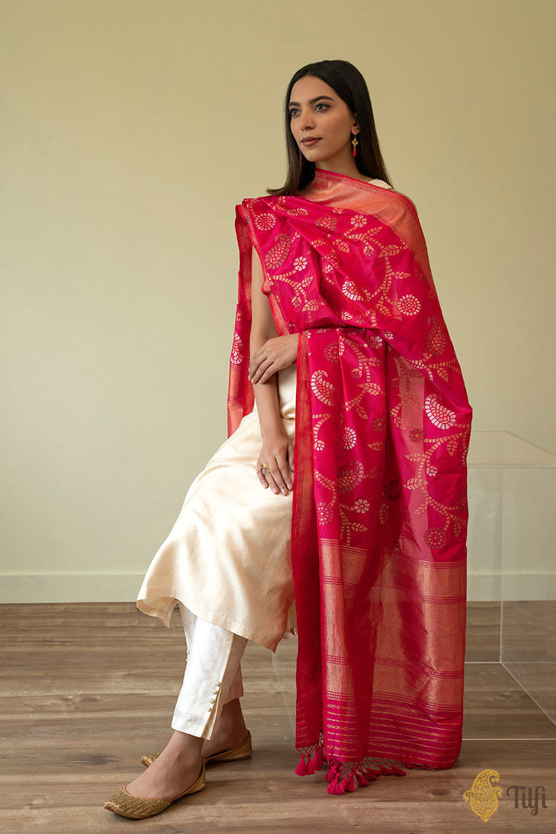 Technique - Fine Meenakari technique which involves the painstaking addition of supplementary coloured resham threads during the hand-weaving process.