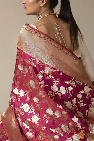 Speciality - A stunning saree of exceptional weaving quality and grandeur in breathtaking gold and silver zari.
