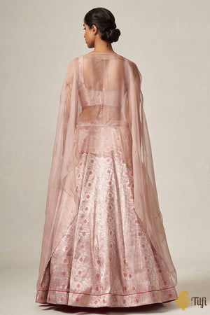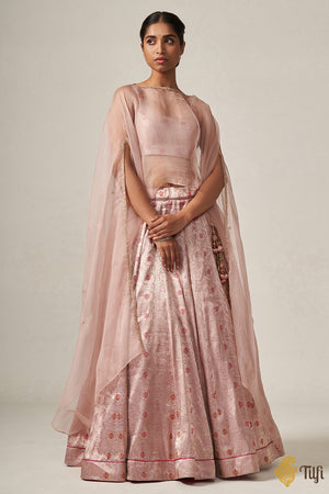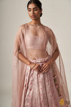 'Santoshi' Light Pink Pure Katan Silk Brocade Handloom Lehenga Cape Set