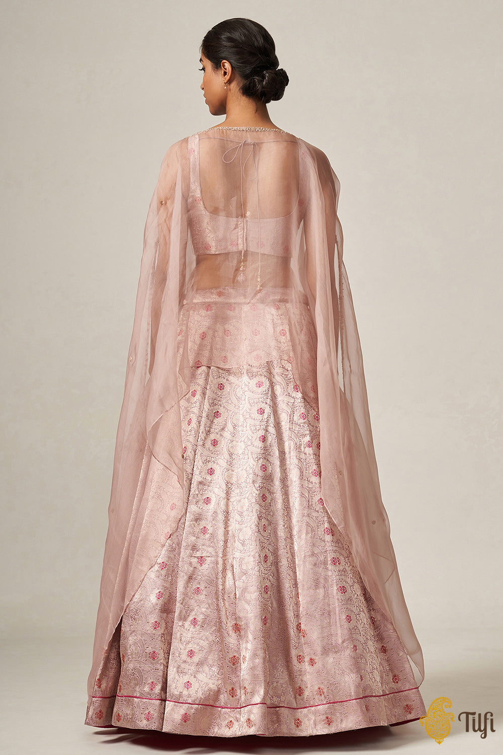 • Color - A charming shade of Light Pink, paired with a delicate organza cape
