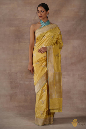 Technique - An enduring Kadwa weave and fine Meenakari technique. The elaborate and laborious Kadwa (Kadhua) technique involves hand-weaving each motif separately. It takes longer on the handloom, but makes a more robust pattern, which stands out on the fabric. Meenakari involves the painstaking addition of supplementary coloured resham threads during the hand-weaving process.