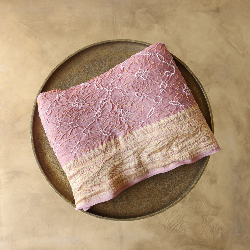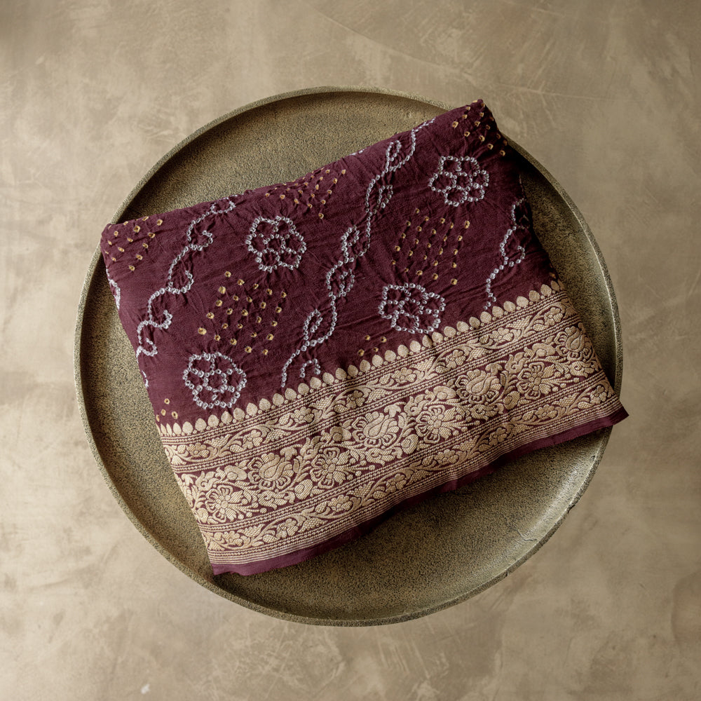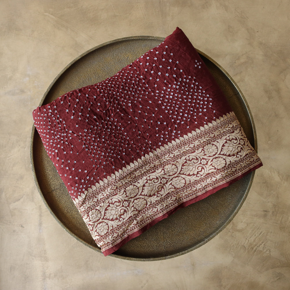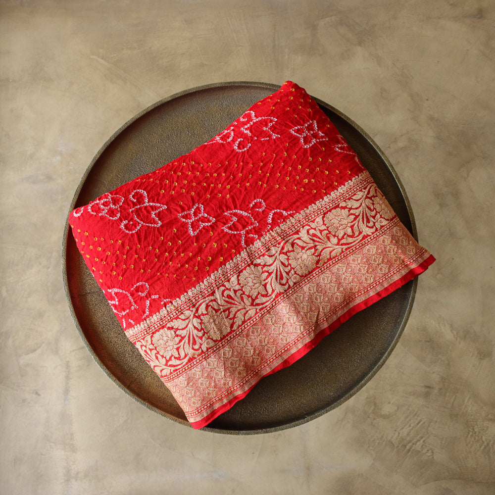 Add a pop of colour to your life with our beautiful Banarasi Bandhanis. A lyrical rendition of Banarasi weaves and traditional Kutchi Bandhej with pinch-sized tied portions of fabrics, hand-dyed in mesmerizing tones.