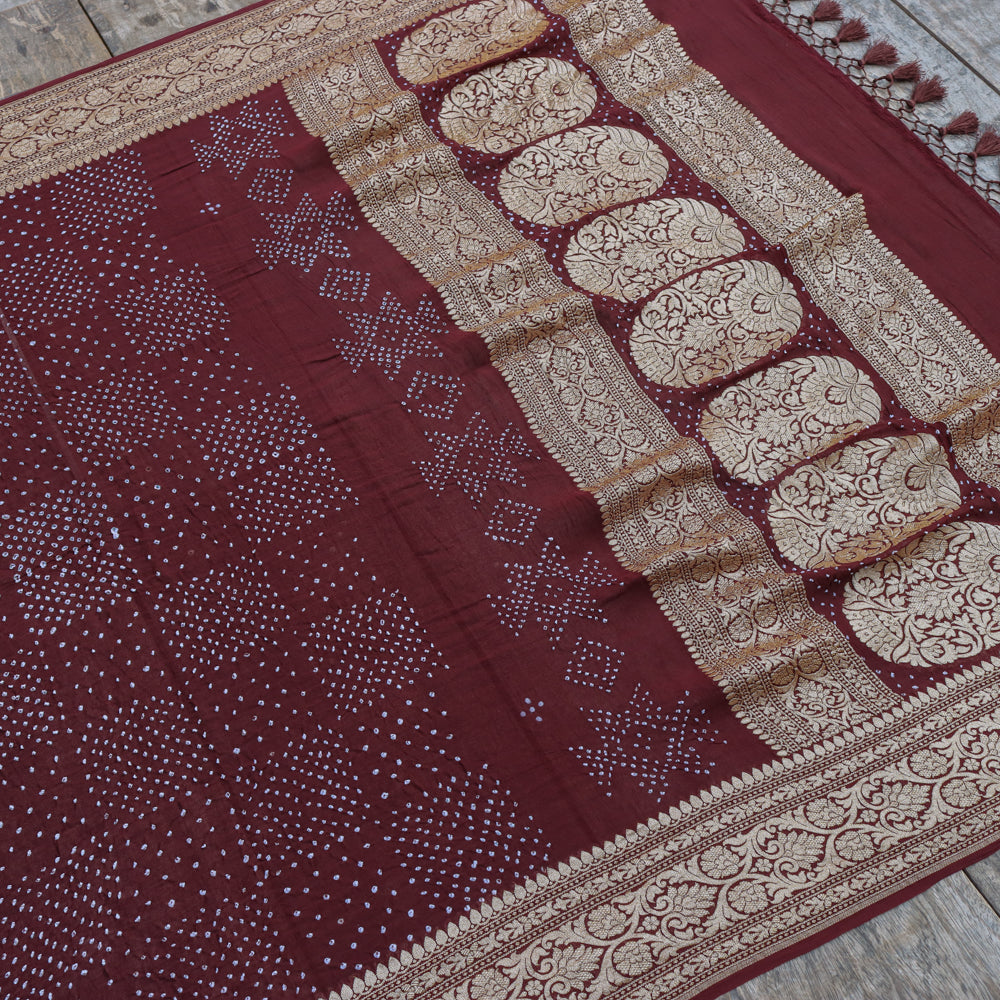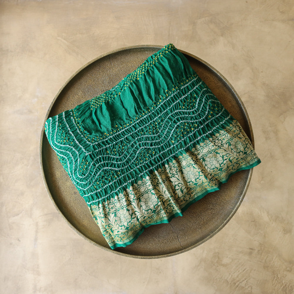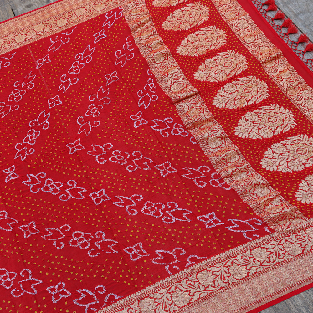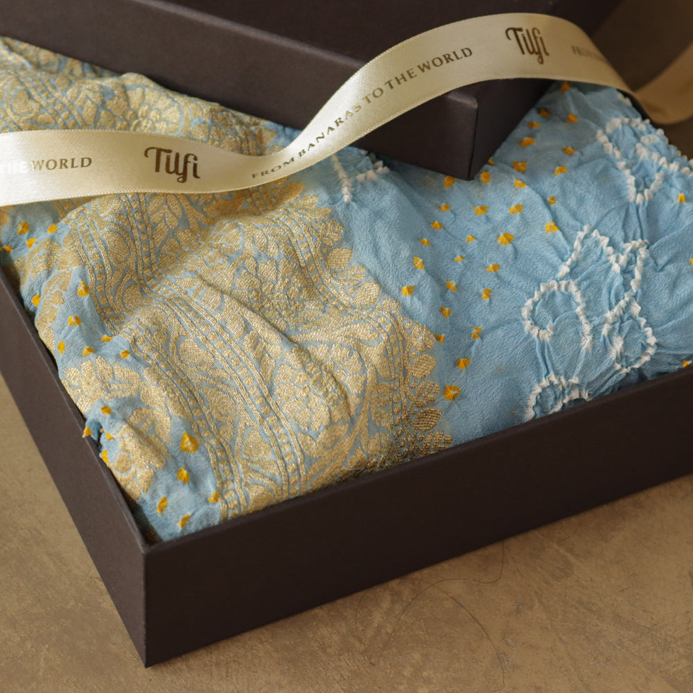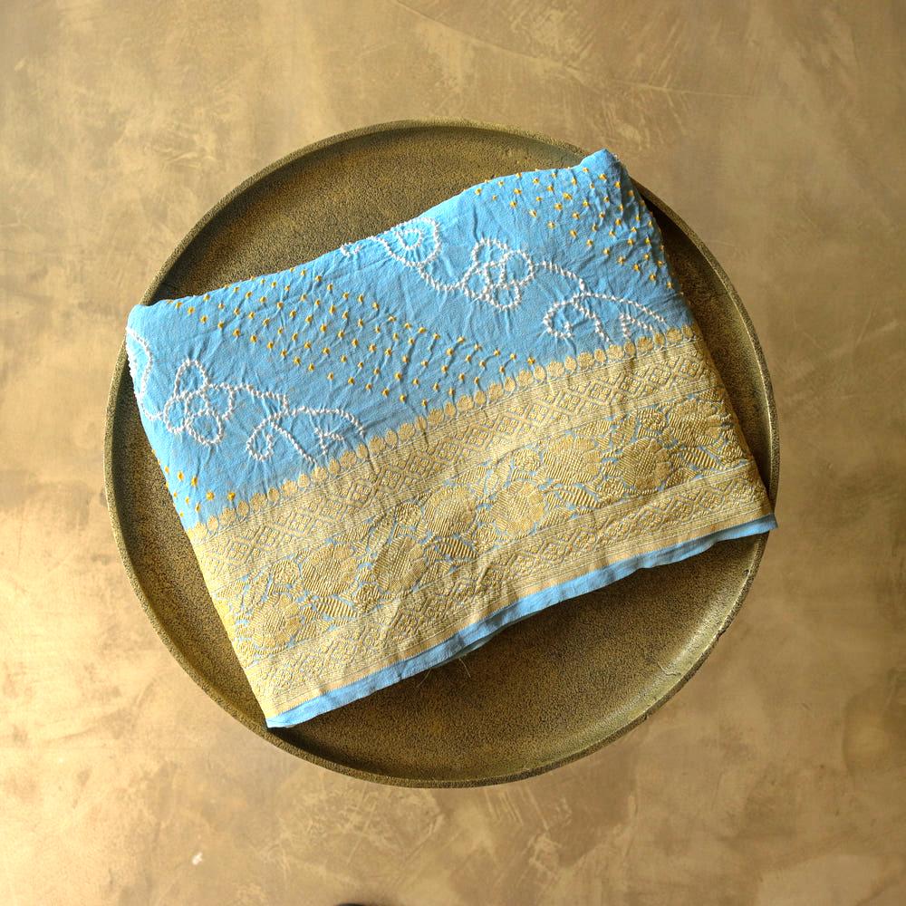 Add a pop of colour to your life with our beautiful Banarasi Bandhanis. A lyrical rendition of Banarasi weaves and traditional Kutchi Bandhej with pinch-sized tied portions of fabrics, hand-dyed in mesmerizing tones.