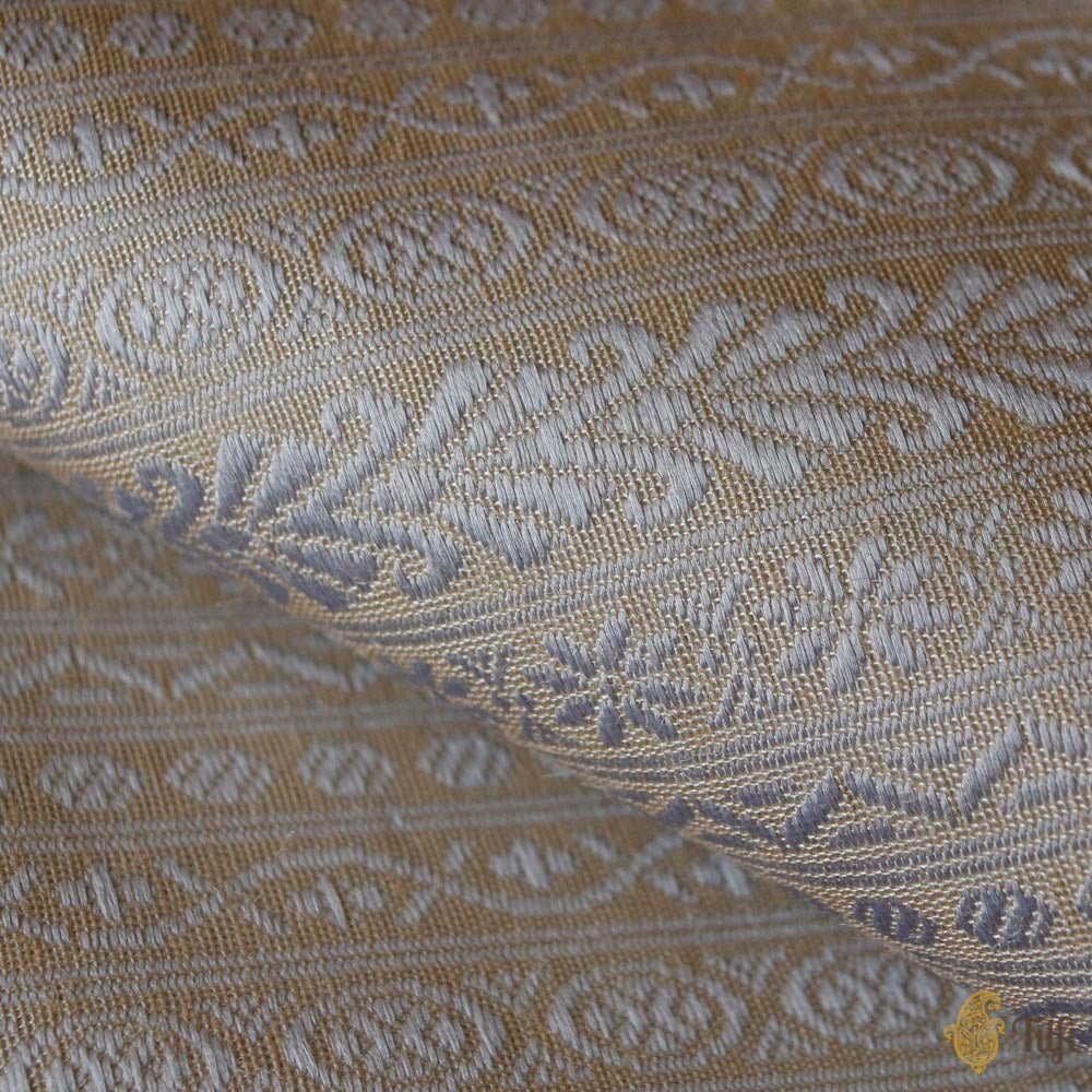 Technique - Classic handwoven Banarasi Tanchoi art passed down through generations. Tanchoi employs one or more warps and multiple coloured wefts to produce a self-design that covers the body of the fabric.