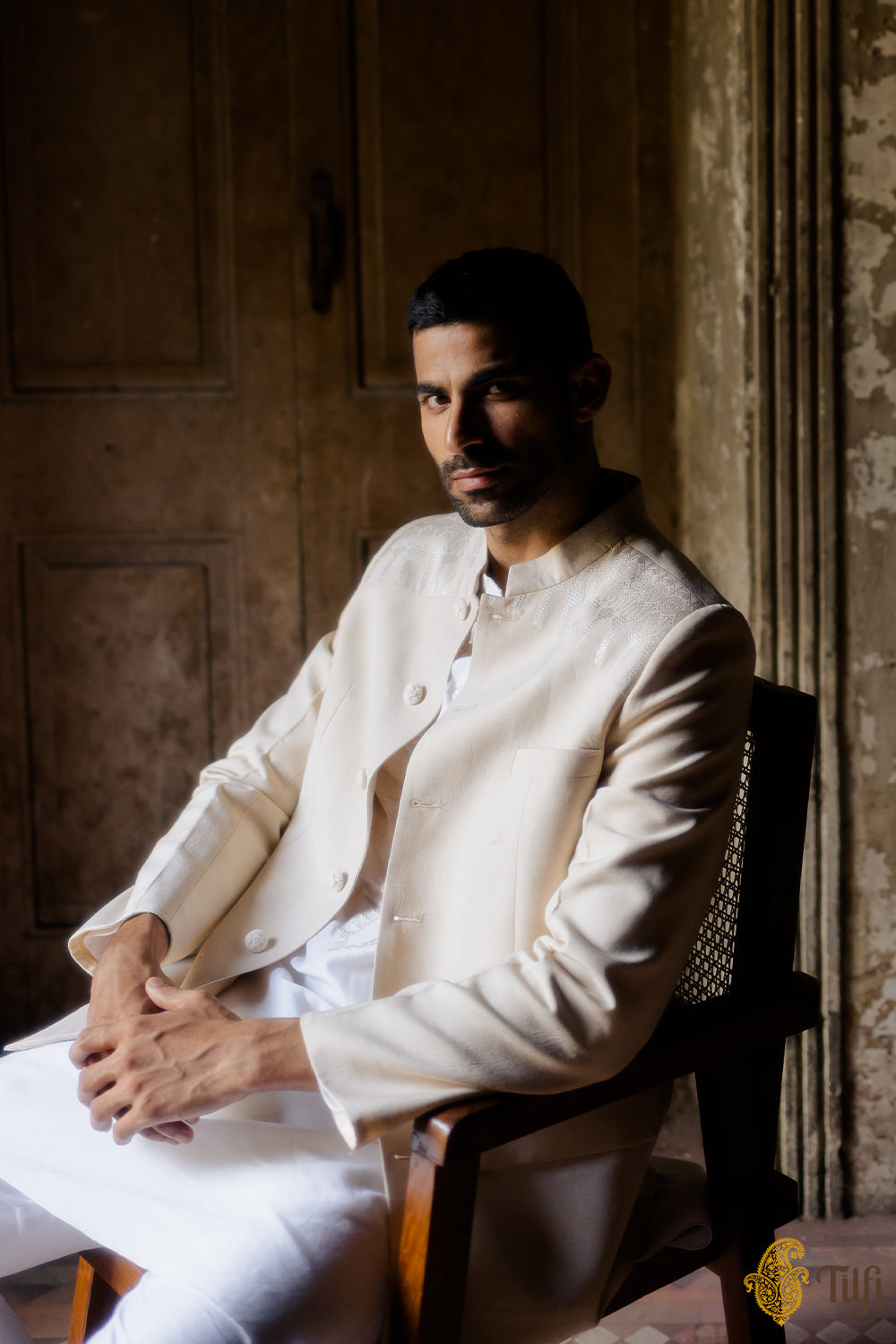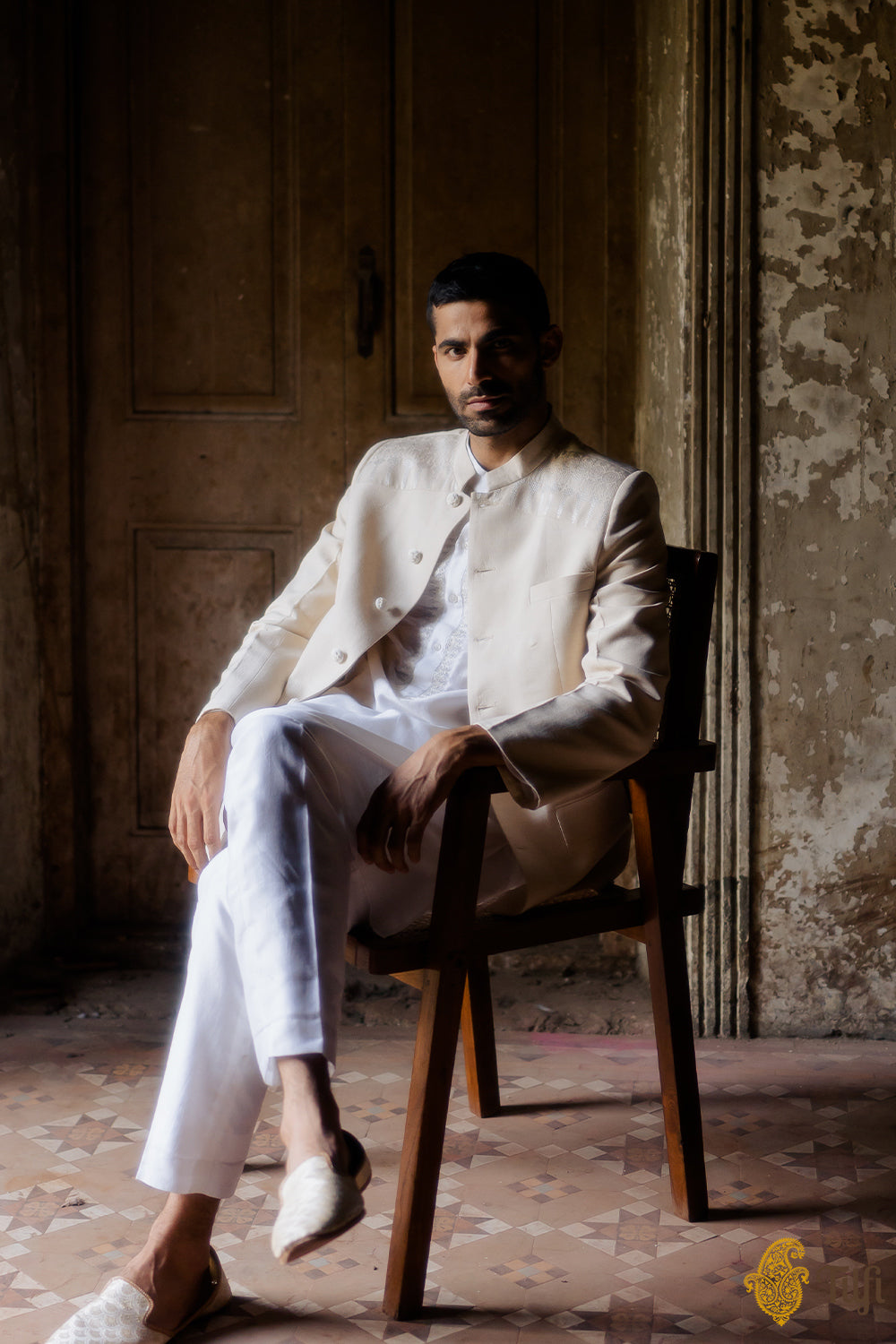 Note - The bandhgala can optionally be paired with the featured white Chanderi silk kurta set below.