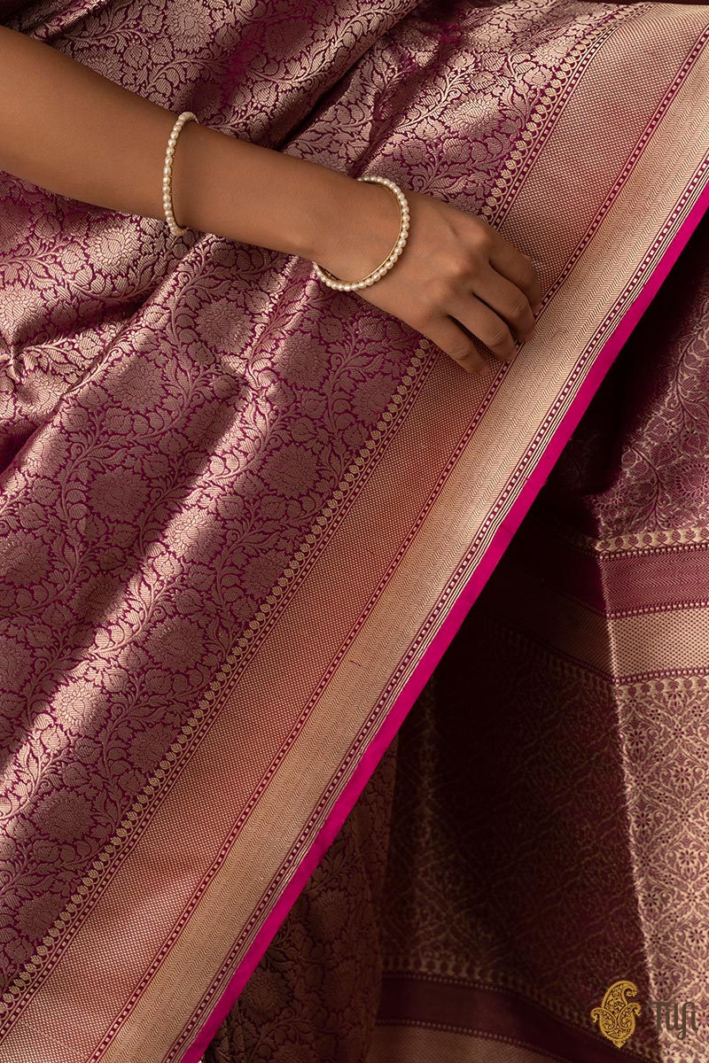 Pre-Order: Amaranth Deep Purple Pure Katan Silk Banarasi Handloom Saree
