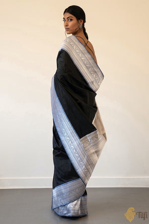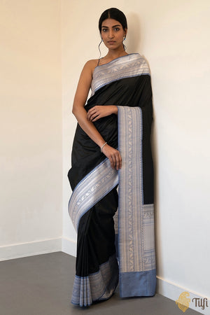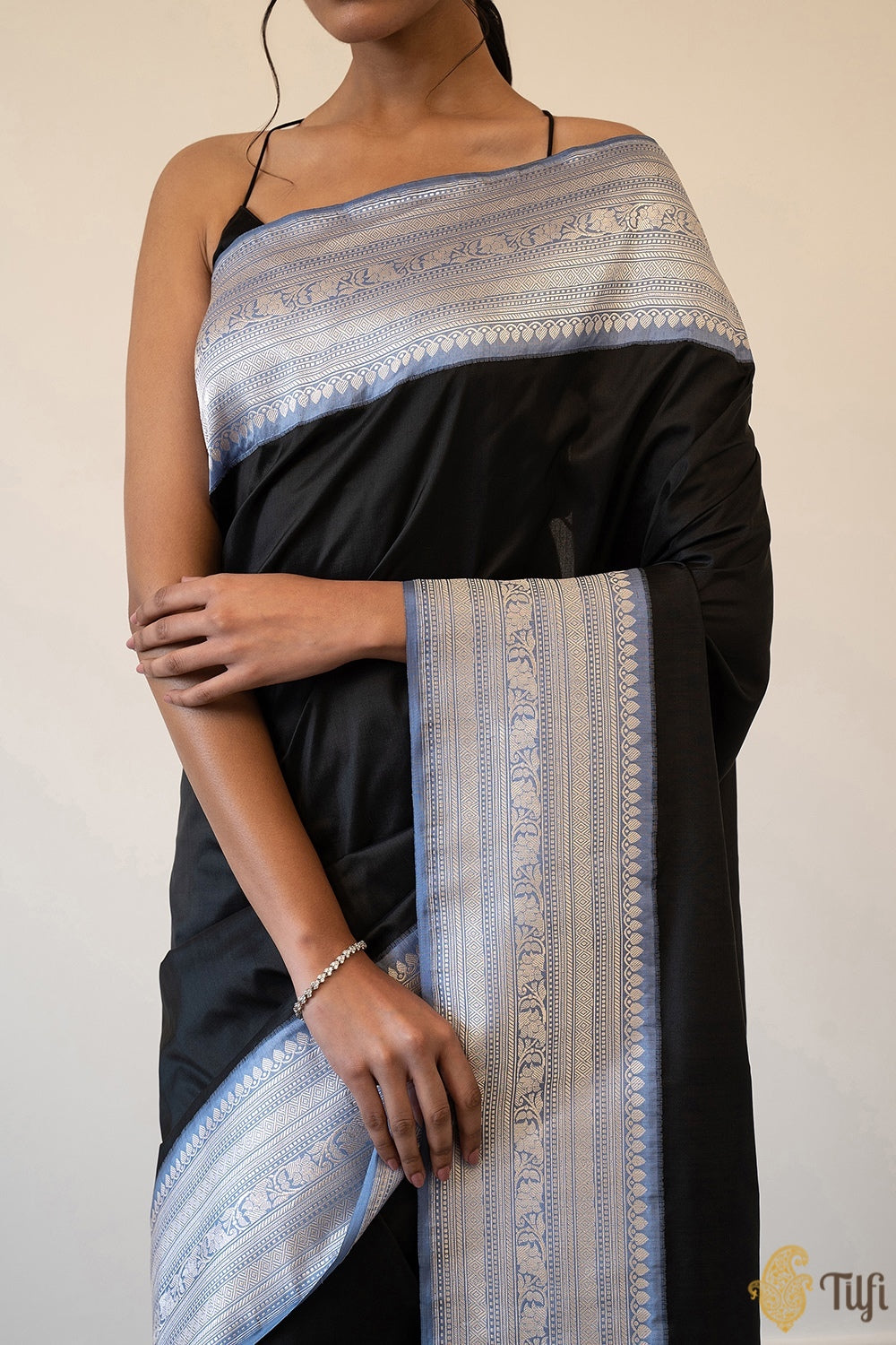 Color - A stunning shade of Black with a contrast Greyish Blue border and aanchal