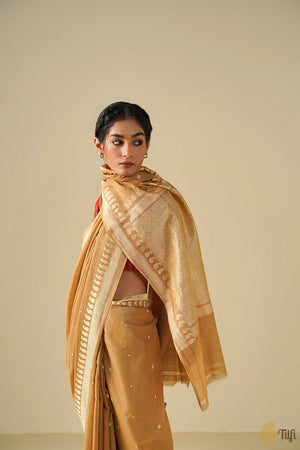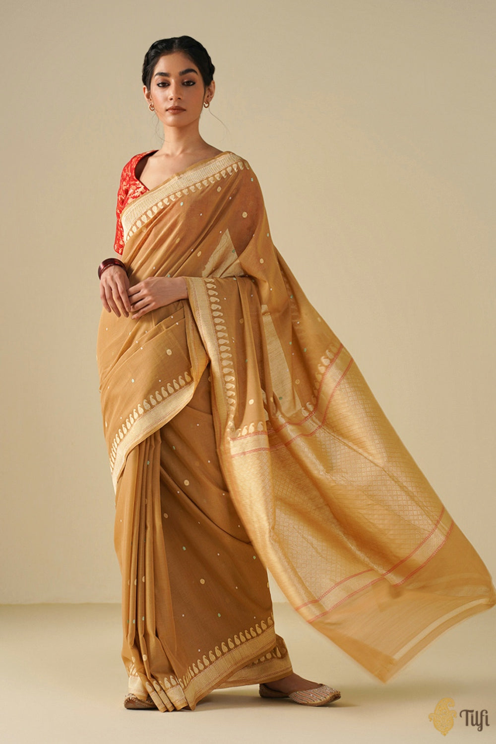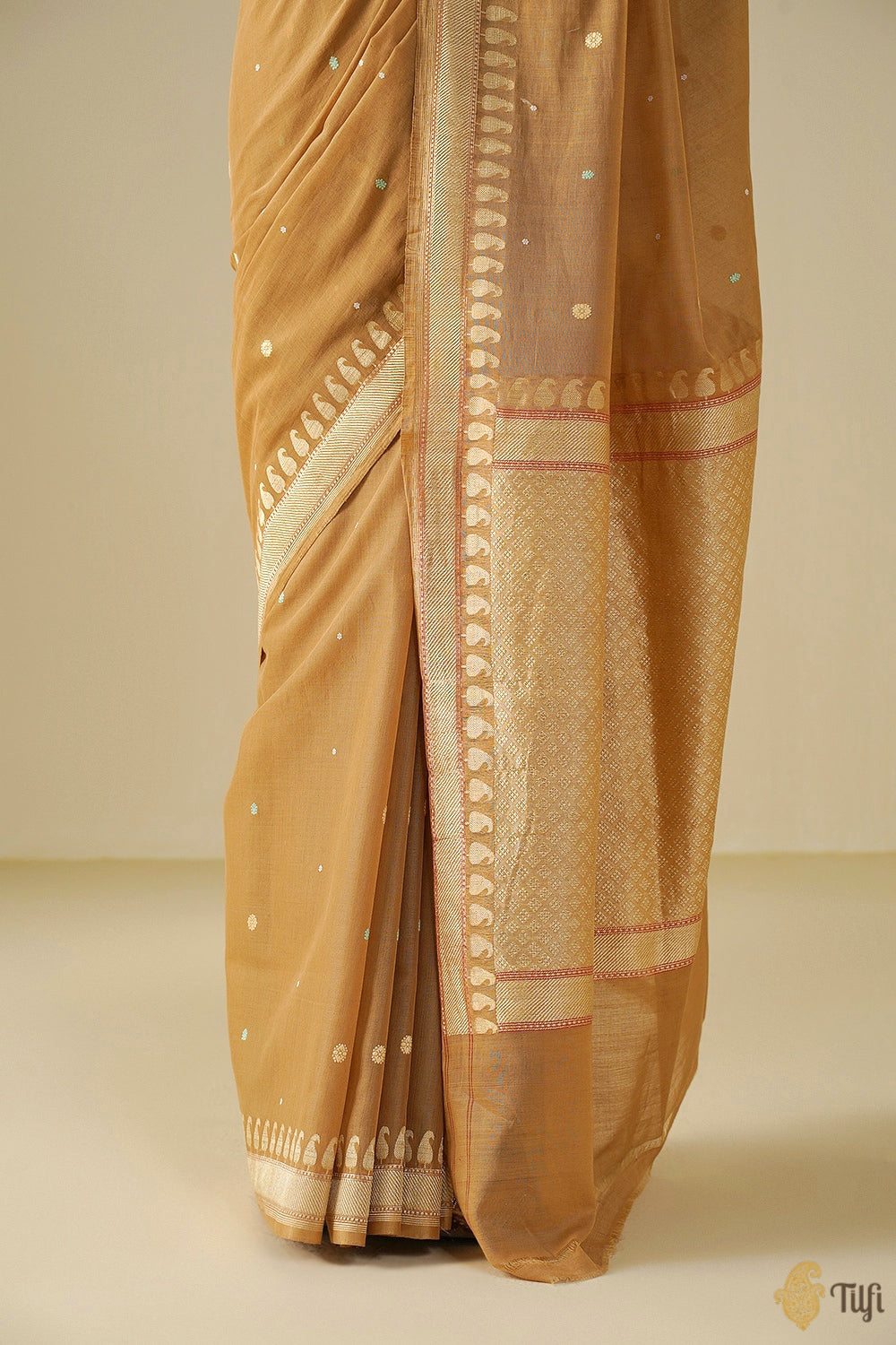 A touch of vintage, a thing of beauty, the perfect marriage of luxury and comfort. This is a charming Banarasi handspun classic in cotton. Delicately patterned with dainty meena bootis in the exquisite kadhua weave and edged with a time-honoured series of paisleys in zari.