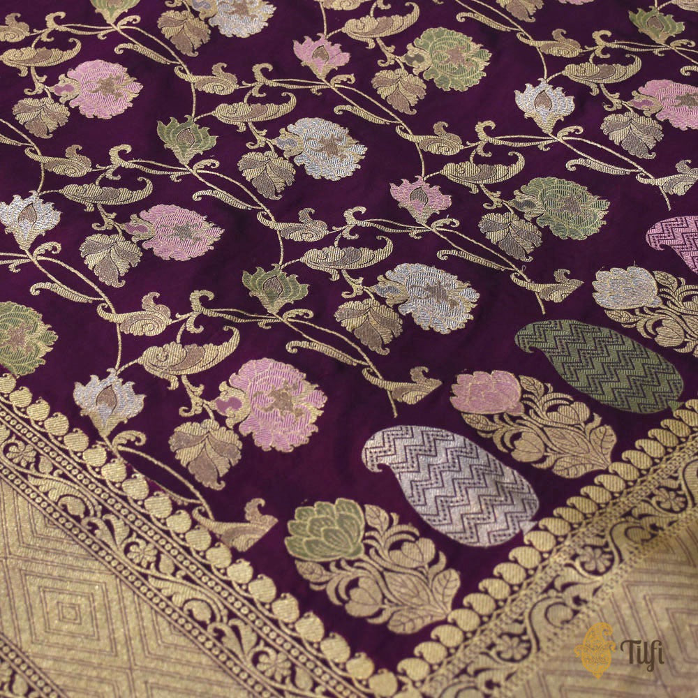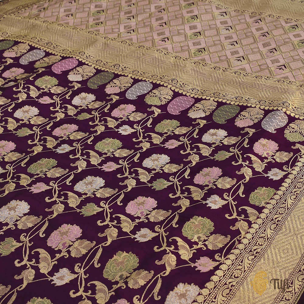 This saree is a vision... each handwoven thread proof of human artistry. An exquisite, full kadhua floral jangla, incredible in its details, handwoven on resplendent silk.