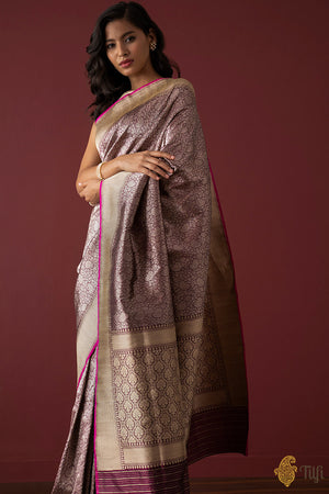 Speciality - A beautiful web of zari all over the body and a rich border and pallu. Age-old Banarasi artistry.