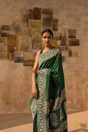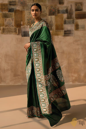 Speciality - Blending the fine textile illustrations of Jadunath Supakar with age-old Banarasi kadwa meenakari weaving, this soft, silken drape features striking floral borders and a blossoming boota pallu.