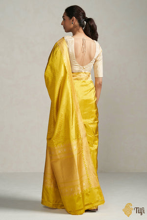 A chic and entirely fabulous Banarasi classic. It has a delightful striped gold zari weave and a gorgeous kadhua border in roopa sona zari. An instant favourite!