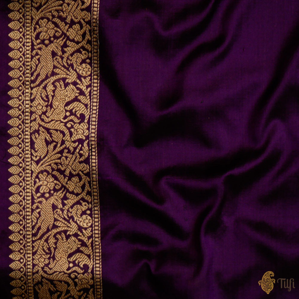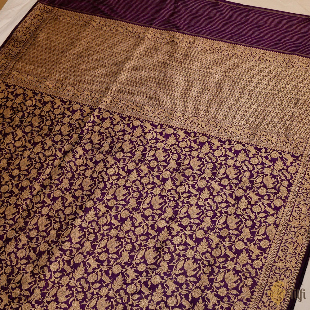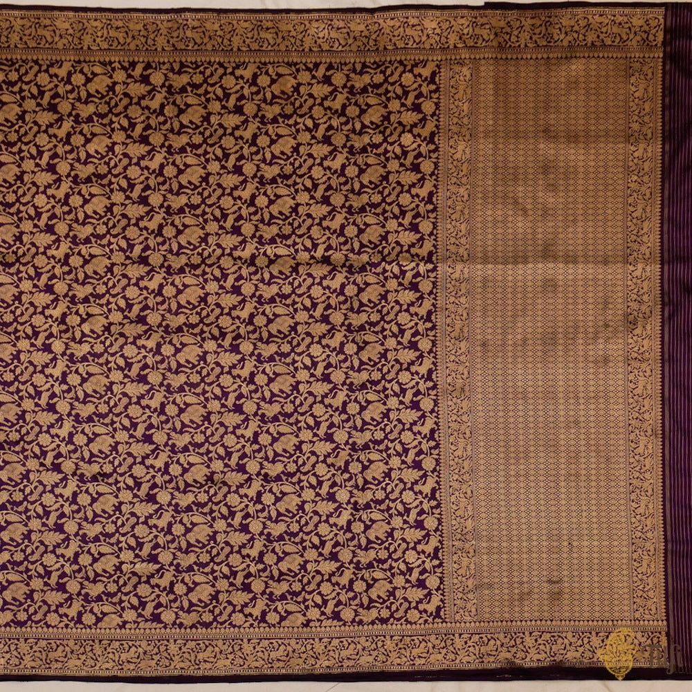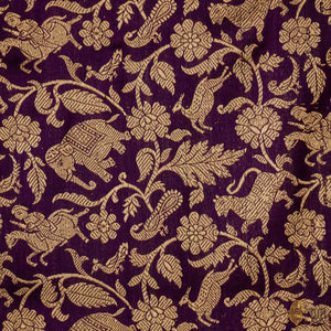 A stunning Banarasi handloom classic. A timeless drape with a melange of human figures, animal motifs, and scrolling vines in zari. An ode to the royal hunting traditions and a testament to the skill of our master weavers.