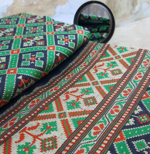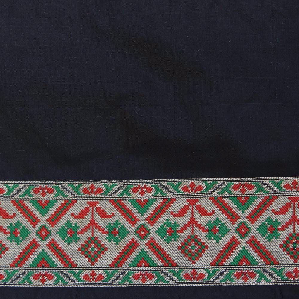Technique - A Gujarati Patola design created using a classic handwoven Banarasi Meenakari art passed down through generations. Meenakari involves the painstaking addition of supplementary coloured resham threads during the hand-weaving process.