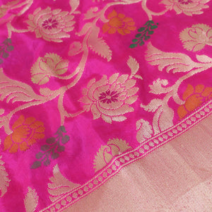 Technique - Fine Meenakari technique which involves the painstaking addition of supplementary coloured resham threads during the hand-weaving process.